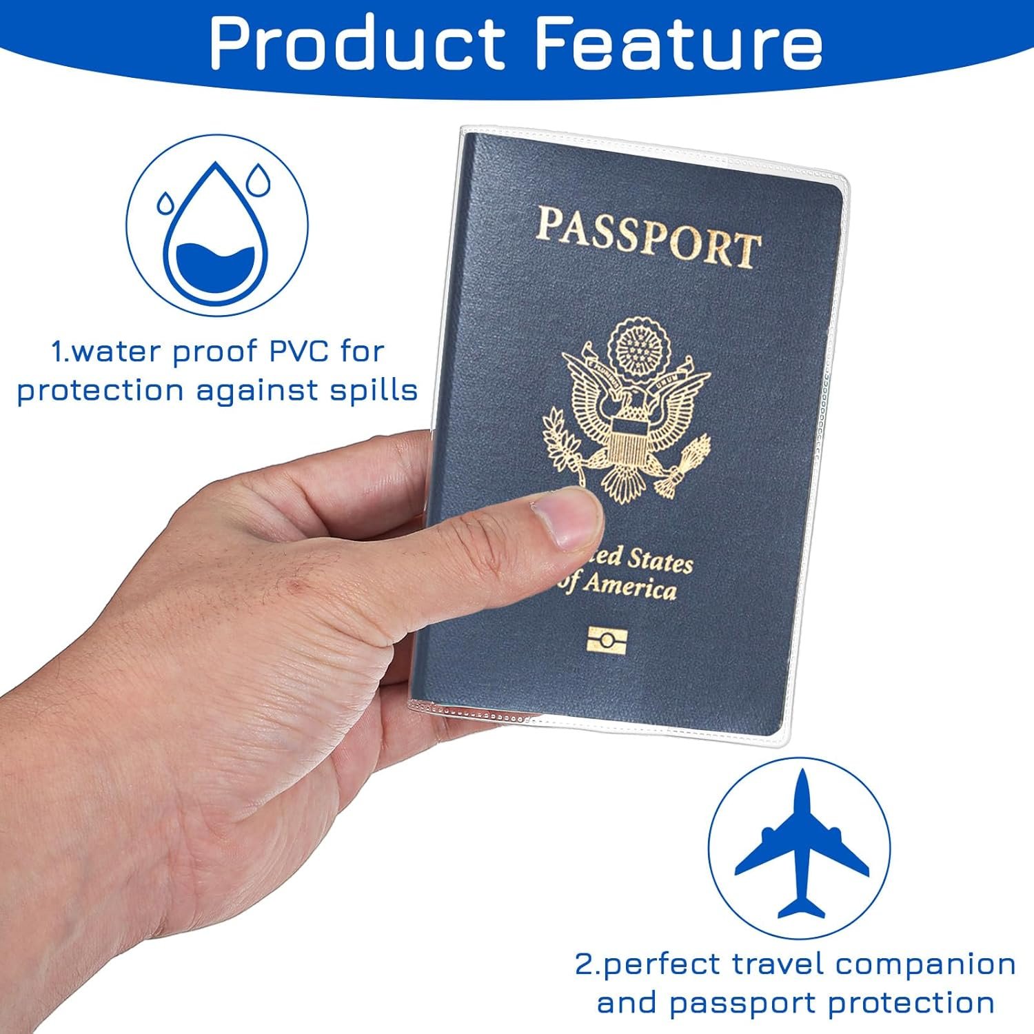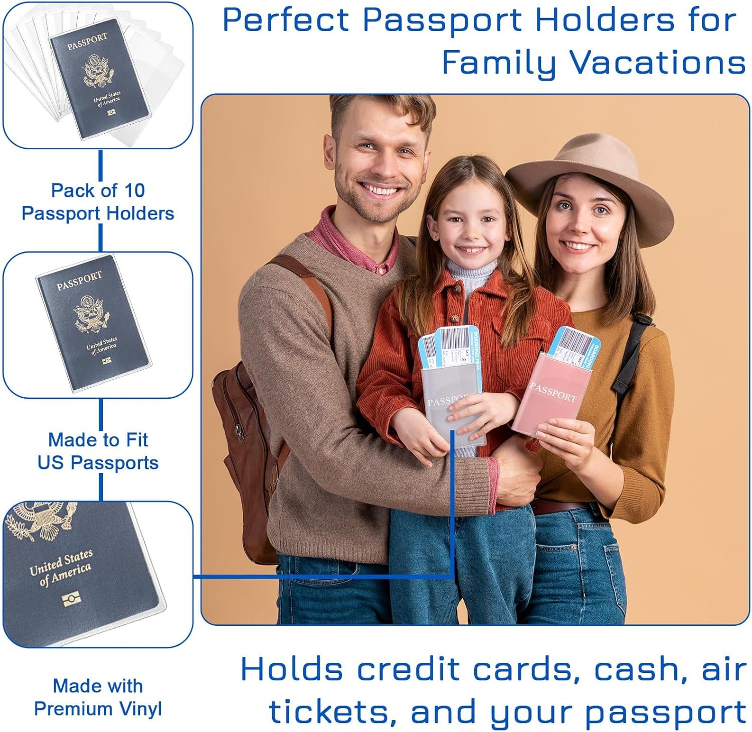 10 Pack Clear Passport Cover, Transparent Plastic Passport Case Holder Sleeve, Waterproof Vinyl Travel Document & Credit Card Organizer