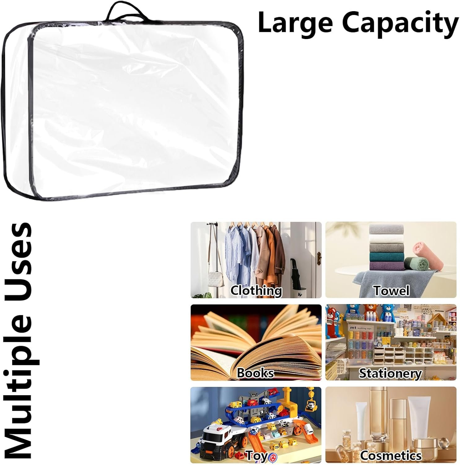 10 Pcs Large Clear Travel Packing Cube, Vinyl Zippered Storage Bags, See-Through PVC Organizer Multipurpose Pouch with Handle for Clothes, Comforter, Bedding (Black, 11.8 x 10.2 x 3.9 Inch)