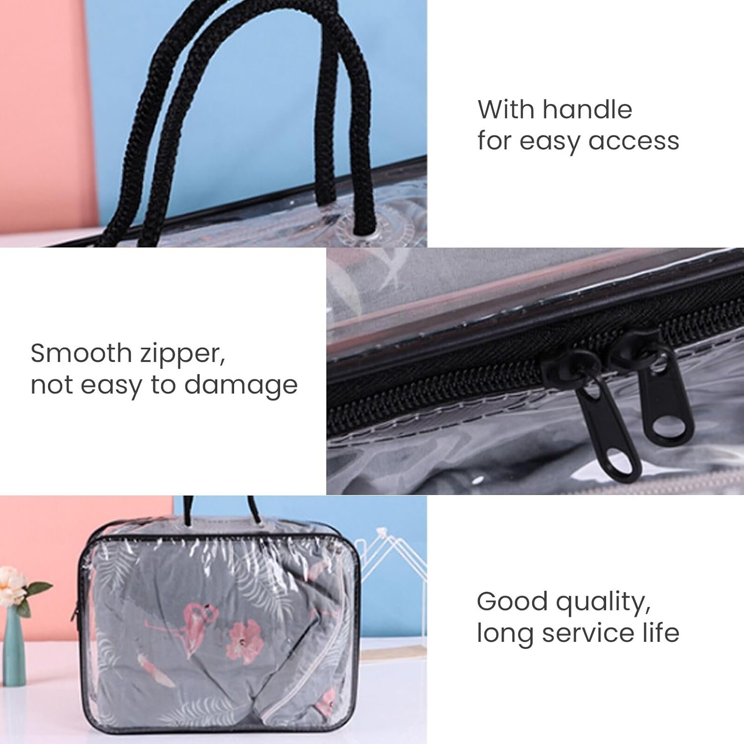 the transparent makeup bag is waterproof and transparent,allow easy access and quick identification of the stored contents.