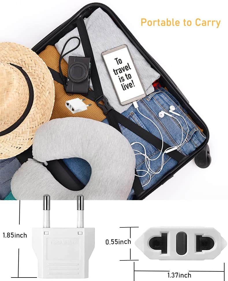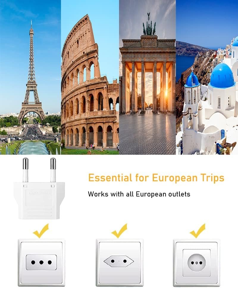 ✈️Wide Compatible: Will fit all european outlets. Type C Plug – For all EU countries such as Austria, Belarus, Belgium, Croatia, Denmark, Finland, Germany, Greece, Germany, Hungary, Portugal, Poland, Netherlands, Spain, Turkey, Iceland, Italy.