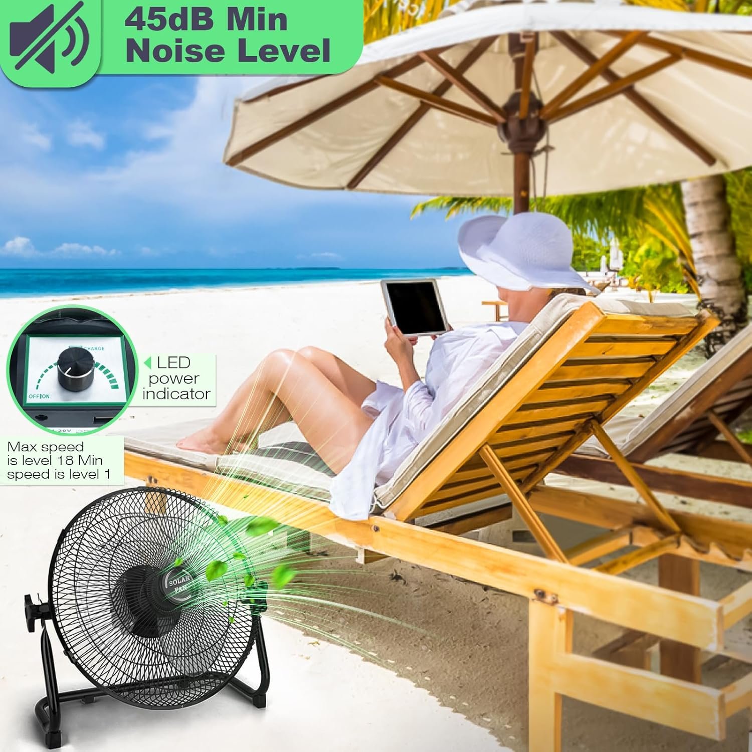 20W Solar Powered Fan: Elevate your outdoor experience with our TonyEst Floor Fan featuring an 20W high-efficiency monocrystalline silicon solar panel charging. With a 16.4 FT long cord, charging becomes hassle during BBQs, sports, camping and various outdoor activities. Whether it’s in a chicken coop, dog kennel, horse barn, greenhouse or while fishing, you can enjoy the refreshing breeze outside while effortlessly harnessing solar energy to charge the fan