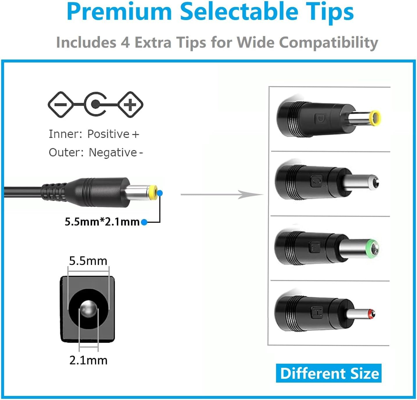 【Specifications】Input:100-240V,50-60Hz;Output:15V 4A 60Watt ,Free Extra Long 1.5M UL Listed AC Cable Included;Connector size: 5.5mm.This AC Adapter Comes with extra 4 tips for widly compatibility .–Please confirm the specifications and plug size before purchasing!If you can’t make sure,pls feel free to contact us.