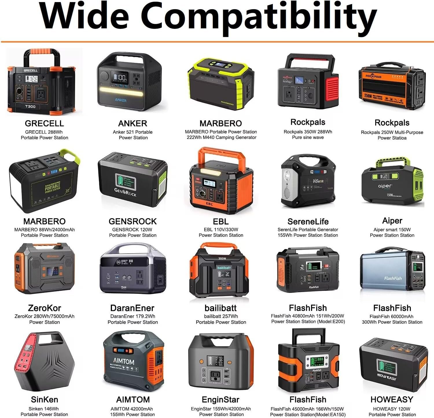 【Non-Compatible】Do Not Fit those portable power station with XT60 or Anderson Power Pole charging port .