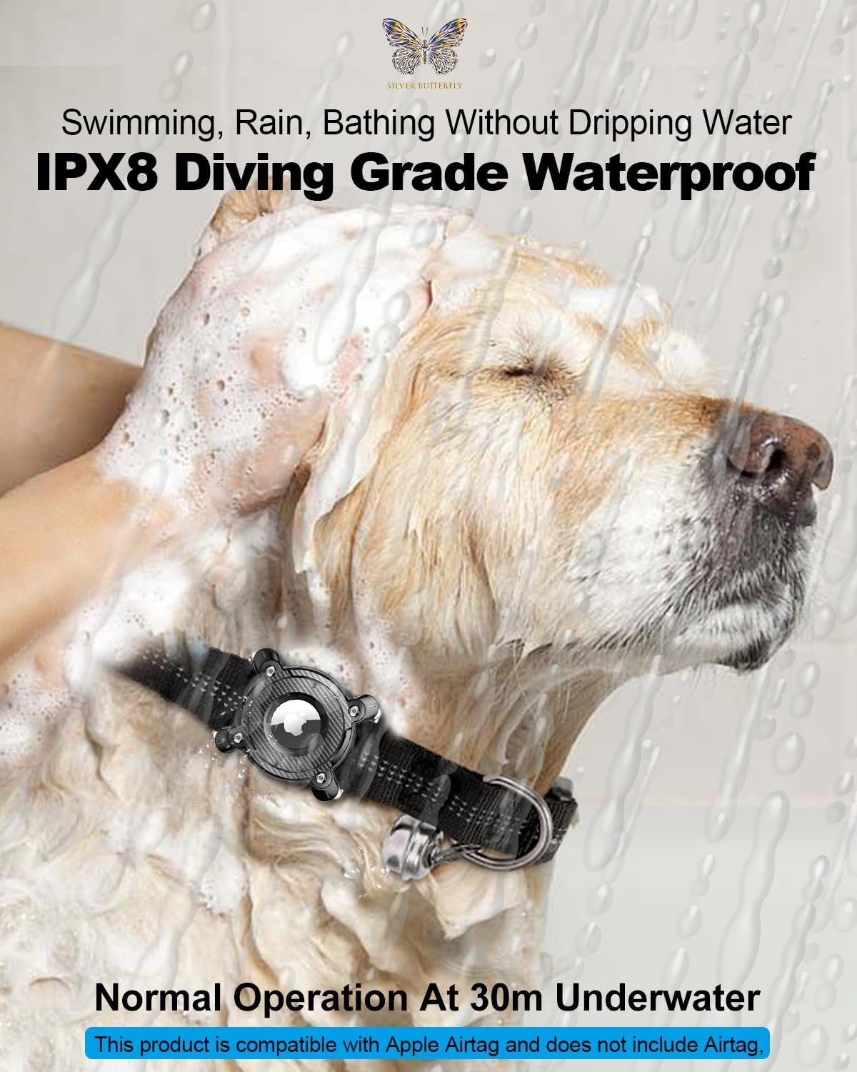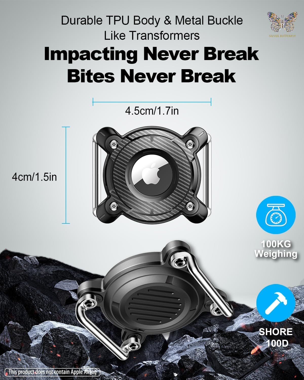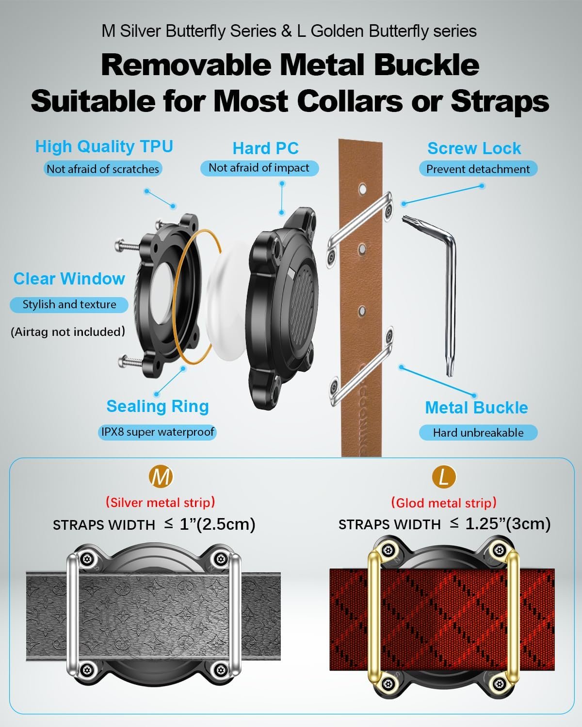 【Airtag Collar Holder Compatibility】 DEERLET focuses on airtag holder and upgrades the Silver Butterfly series.This airtag dog collar holder Waterproof is specially designed for Apple Airtag. 1:1 original molded airtag holder fit solidly, suitable for other air tag equipment.Transparent window allows you to see the Apple Airtag,Dog airtag holder with a more fashionable design that does not affect the Apple Airtag signal (Note:Apple Air tag not included.)