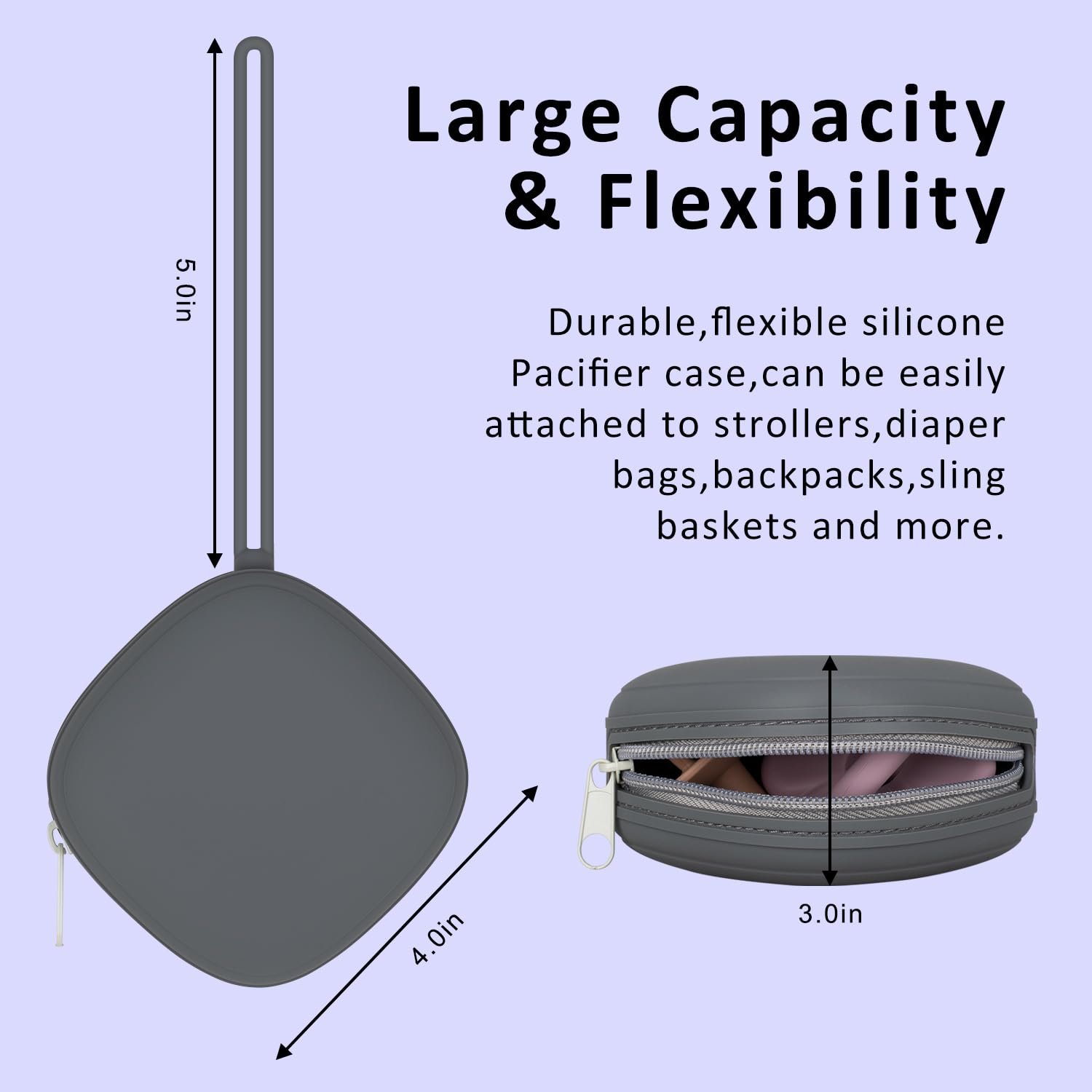 【MULTIFUNCTIONAL COMPANION】: Equipped with a 2-pack silicone baby pacifier holder case in neutral colors to make you and your little one’s travel more stylish. Our pacifier pouch is large enough to hold up to 2 pacifiers or small essentials like pacifier clips, teether toys, and even earplugs, lip balm, and keys.