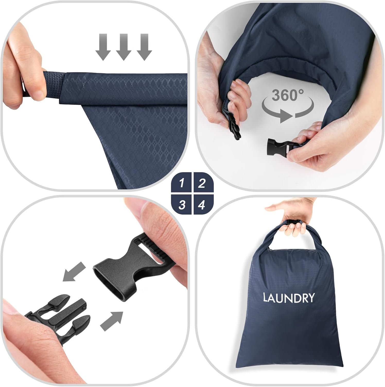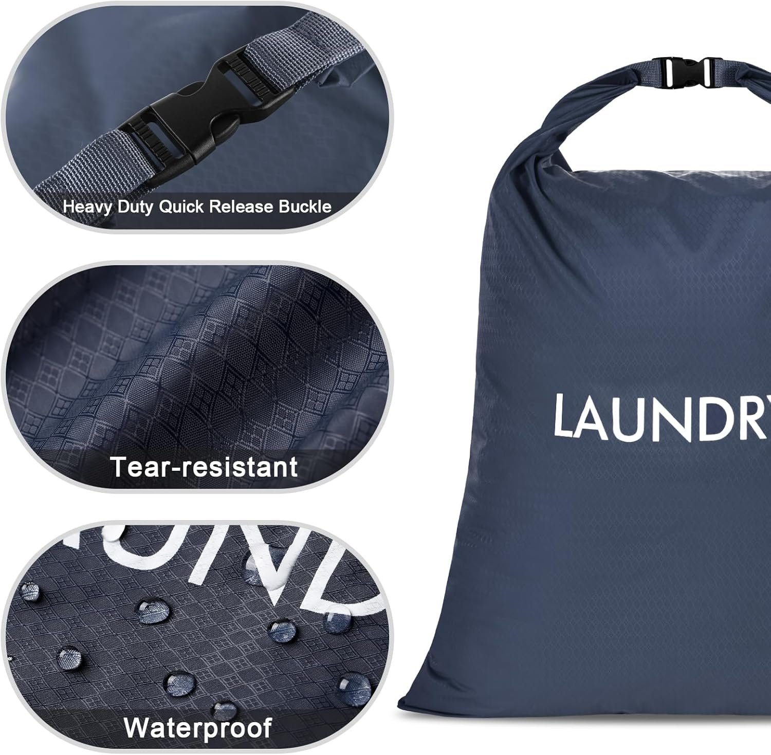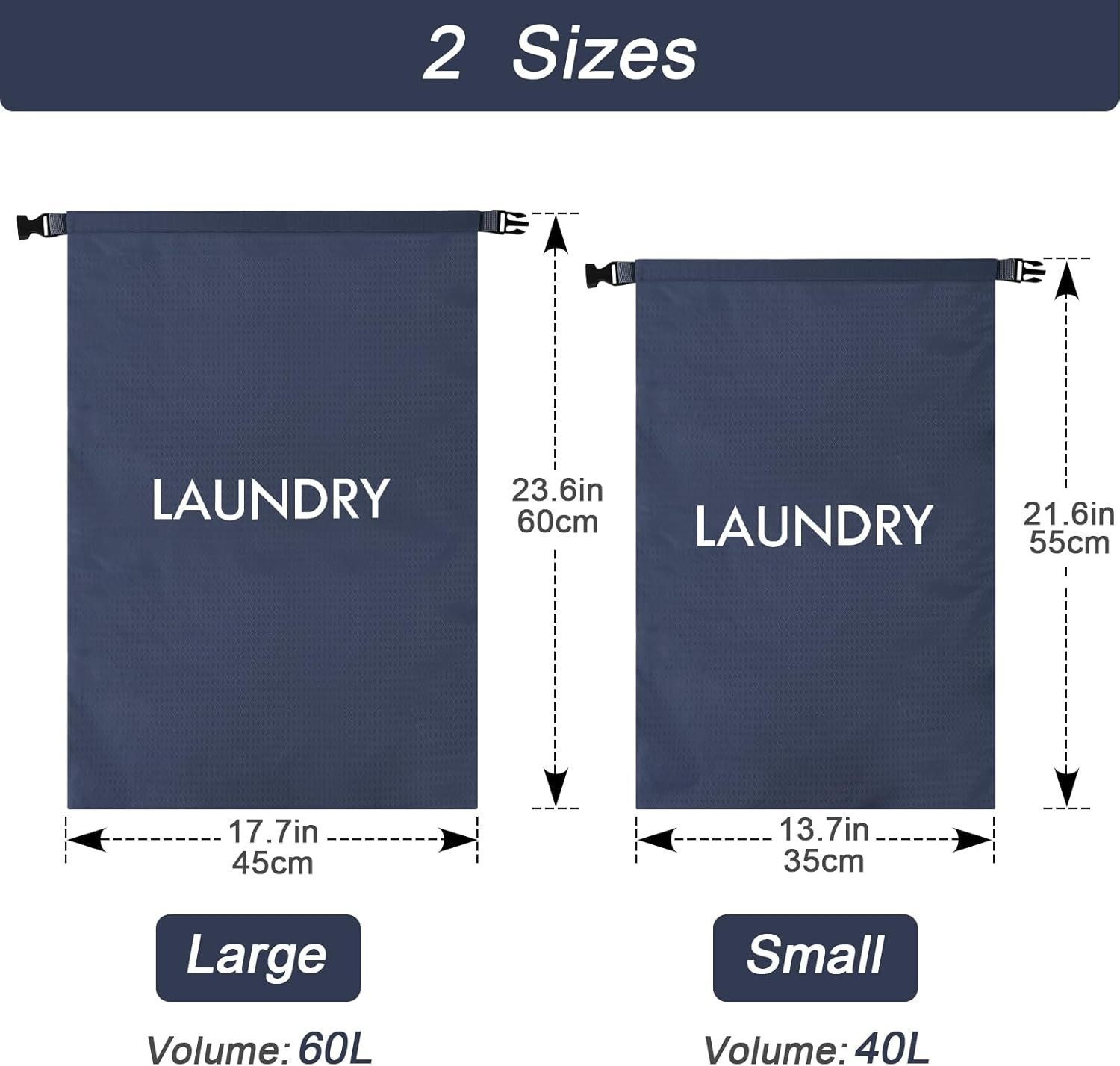 2 Pack Travel Laundry Bag, Nylon Washing Bags for Laundry, Roll Top Wet Dry Bag for Swimming Yoga Bathing Suit Workout, Dirty Clothes Storage Organiser