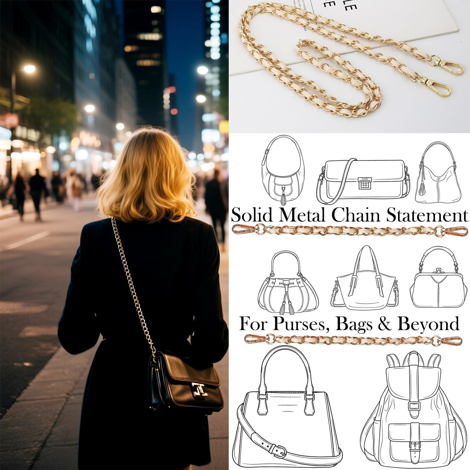 Our 2 Pieces Purse Chain Strap is designed to give your favorite bags a new lifeWhether you need a replacement for an old purse strap or want to switch up your style, this product offers the perfect blend of luxury and functionalityThe gold leather iron flat chain is carefully crafted to suit a wide range of handbag styles, providing a sleek, modern upgrade to any shoulder bag or crossbody bag