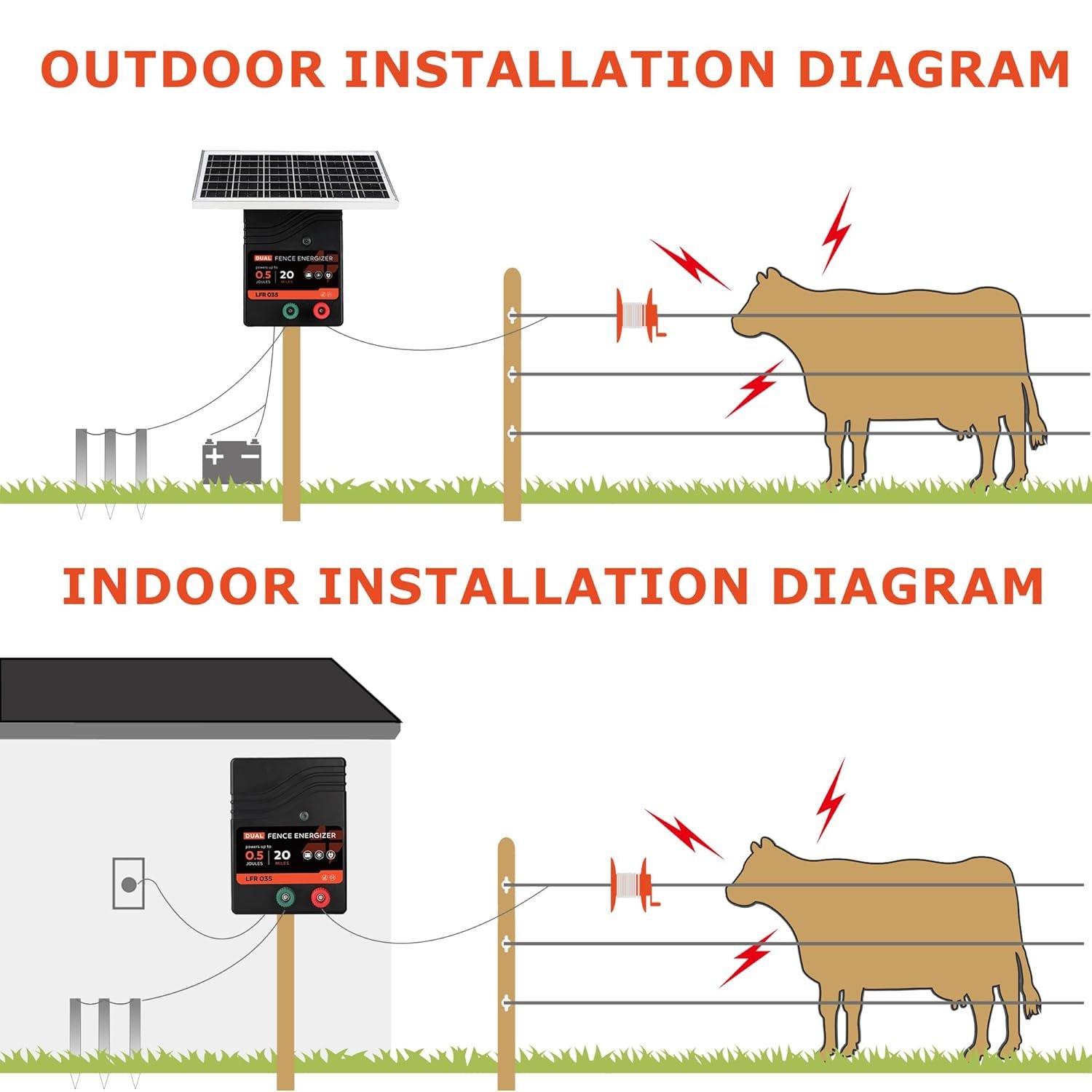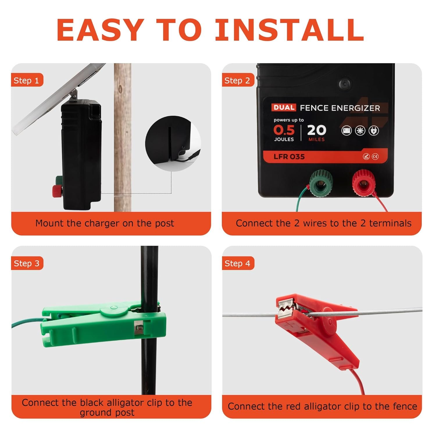 【Easy to Use】Our electric fence charger is easy to install and can be set up in just a few simple steps. No need to worry about complicated wiring layouts or cumbersome adjustments.