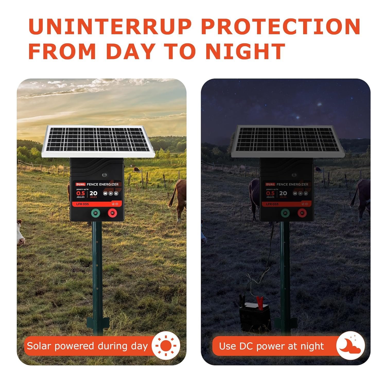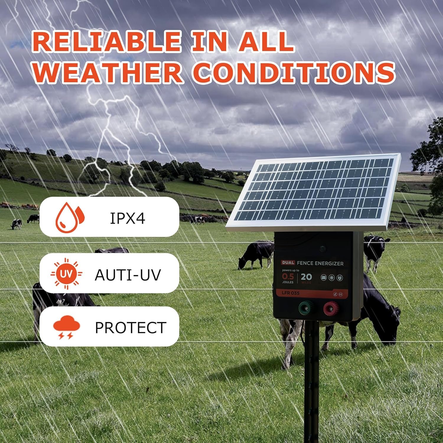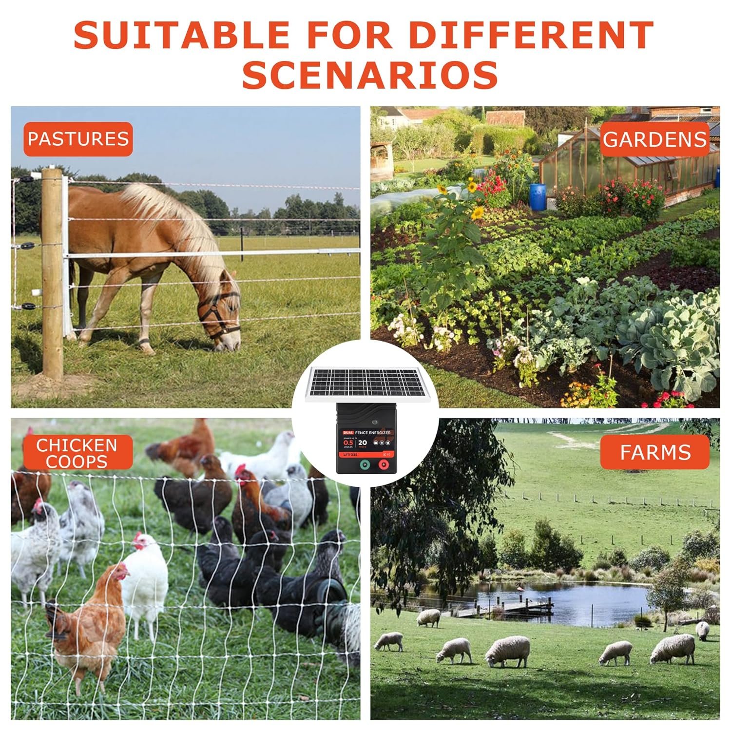 Suitable for extensive coverage on a farm or large property, and can effectively protect livestock, pets and farmland and deter intruders