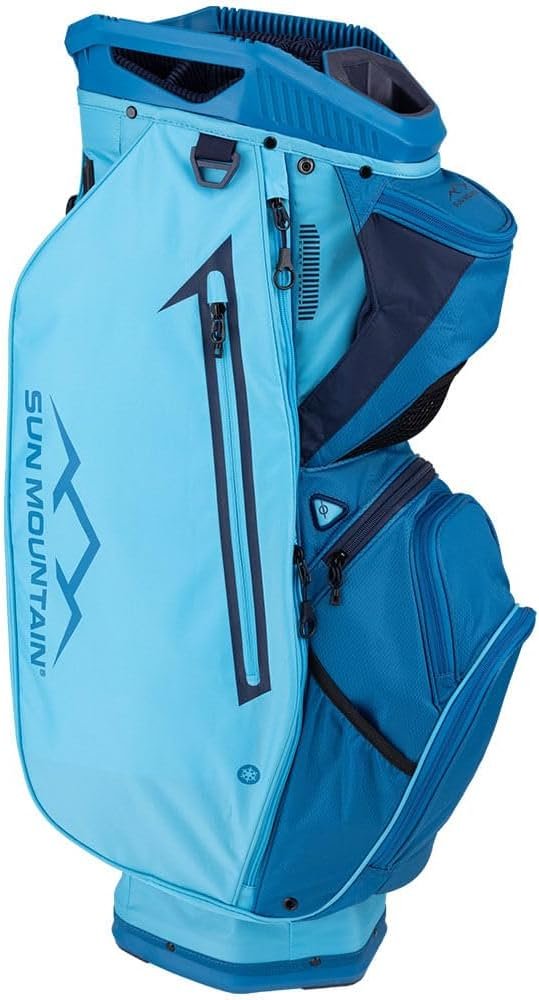 The Sync is designed specifically for use on push carts.Sun Mountain started with a top and bottom built to nest in the upper and lower bag wraps of their carts. Then,Sun Mountain molded the bag bottom so it fits over the lower bag rest of Speed Cart V1R, Pathfinder PX3 and PX4 to limit side-to-side bag motion. In addition, all pockets are forward-facing and accessible when the bag is on a cart. Finally, there is a cart strap pass-through so the Sync can be strapped to the cart without hindering pocket usage.