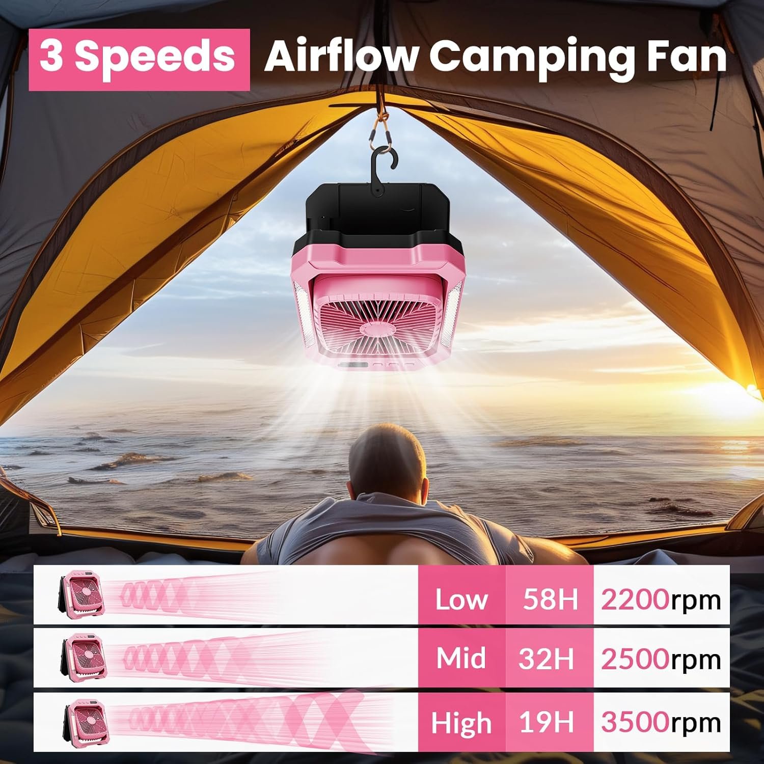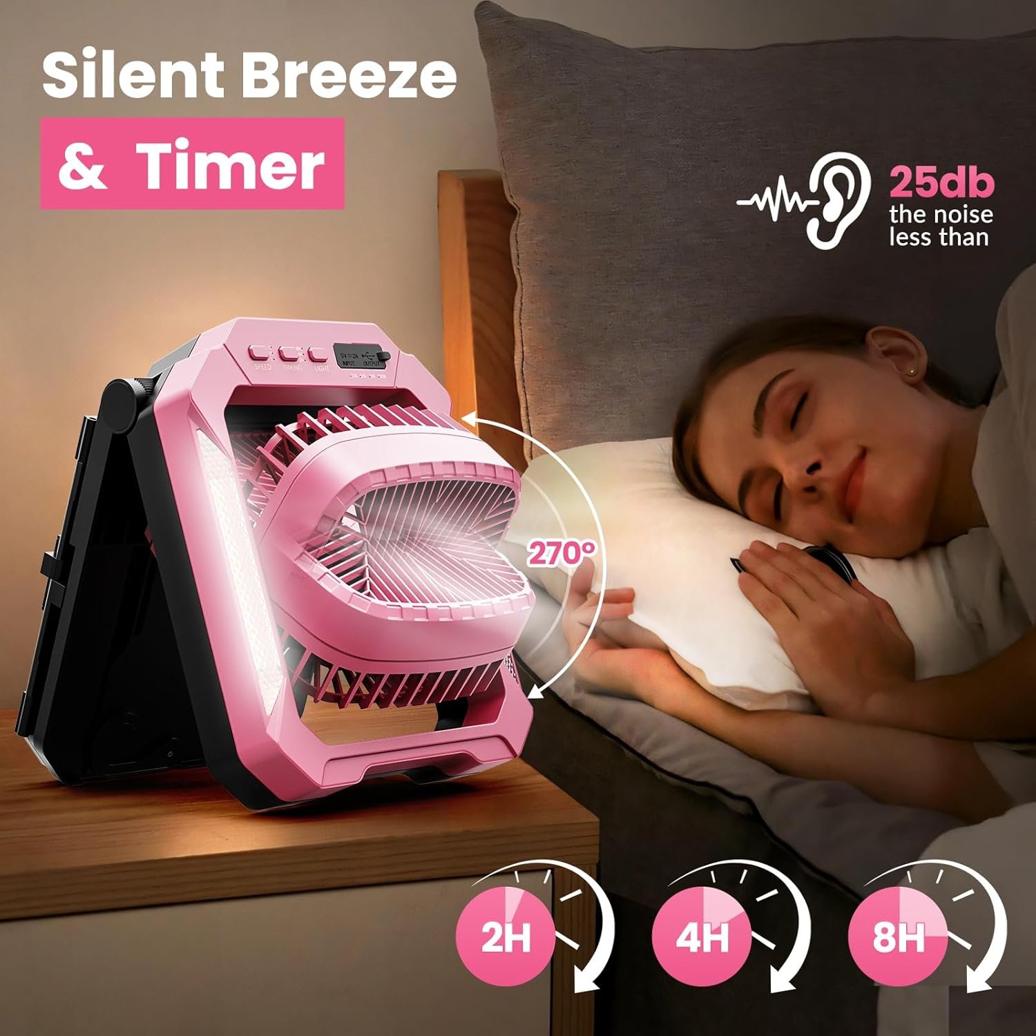 【Versatile Design with Built-in Light】: Easily adjust the fan angle up or down and even hang it for optimal placement. The integrated two-level white light provides convenient illumination when needed during at night