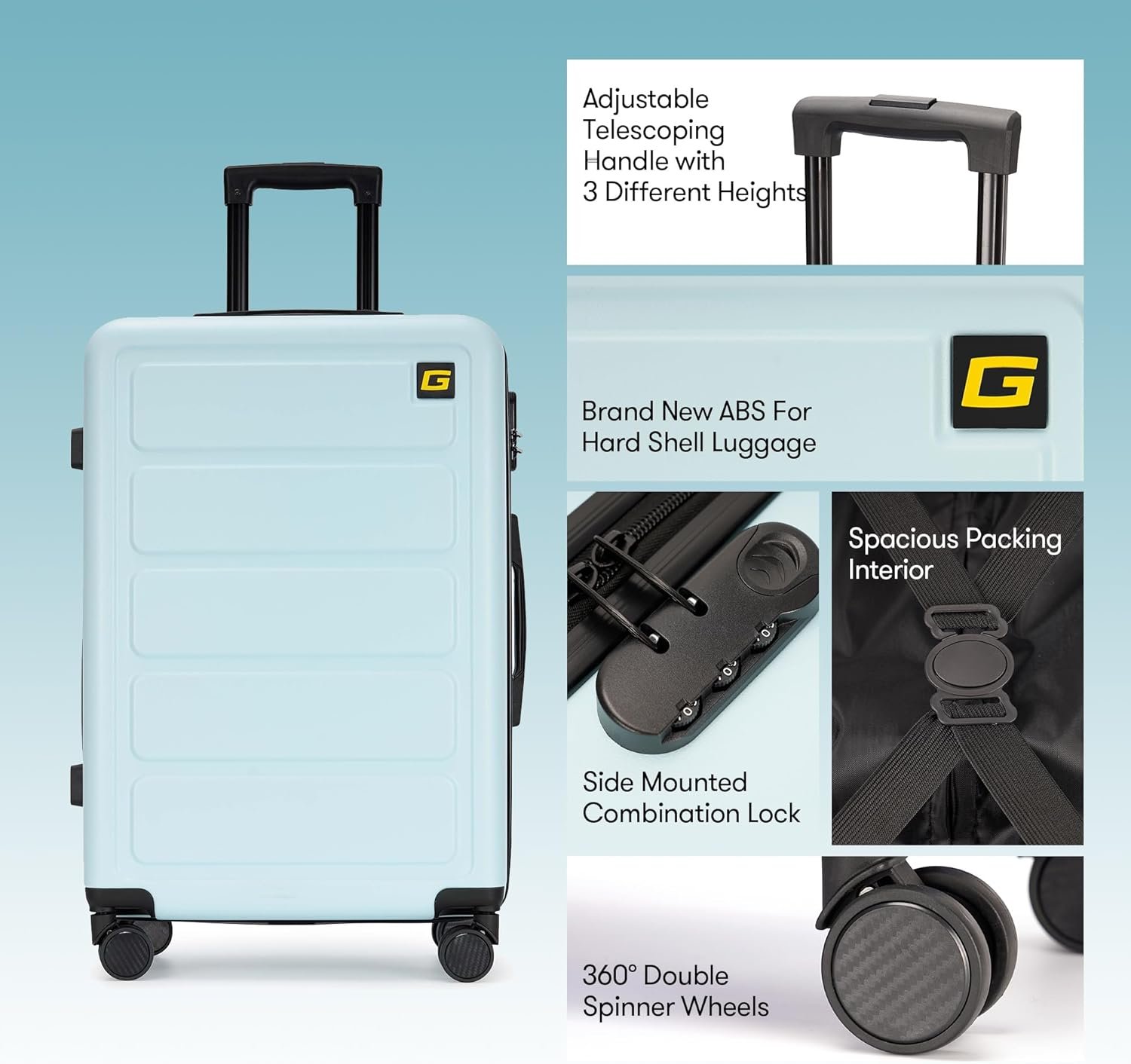 Sturdy ergonomic aluminum telescoping handle system provides fluent and smooth experience. The unique shaped multi-directional silent wheels will not make any noise when being rotated and it’s more durable in structure