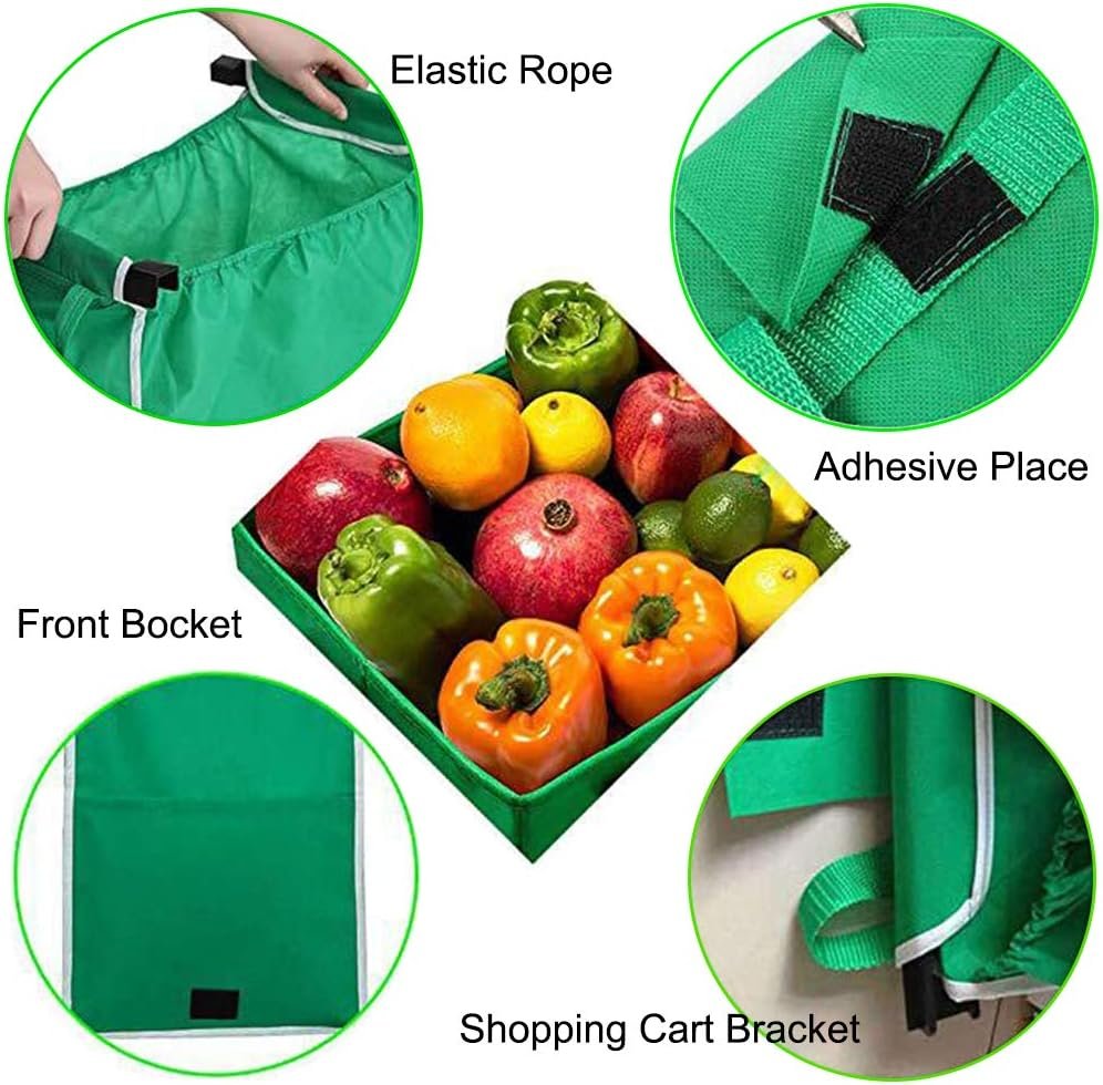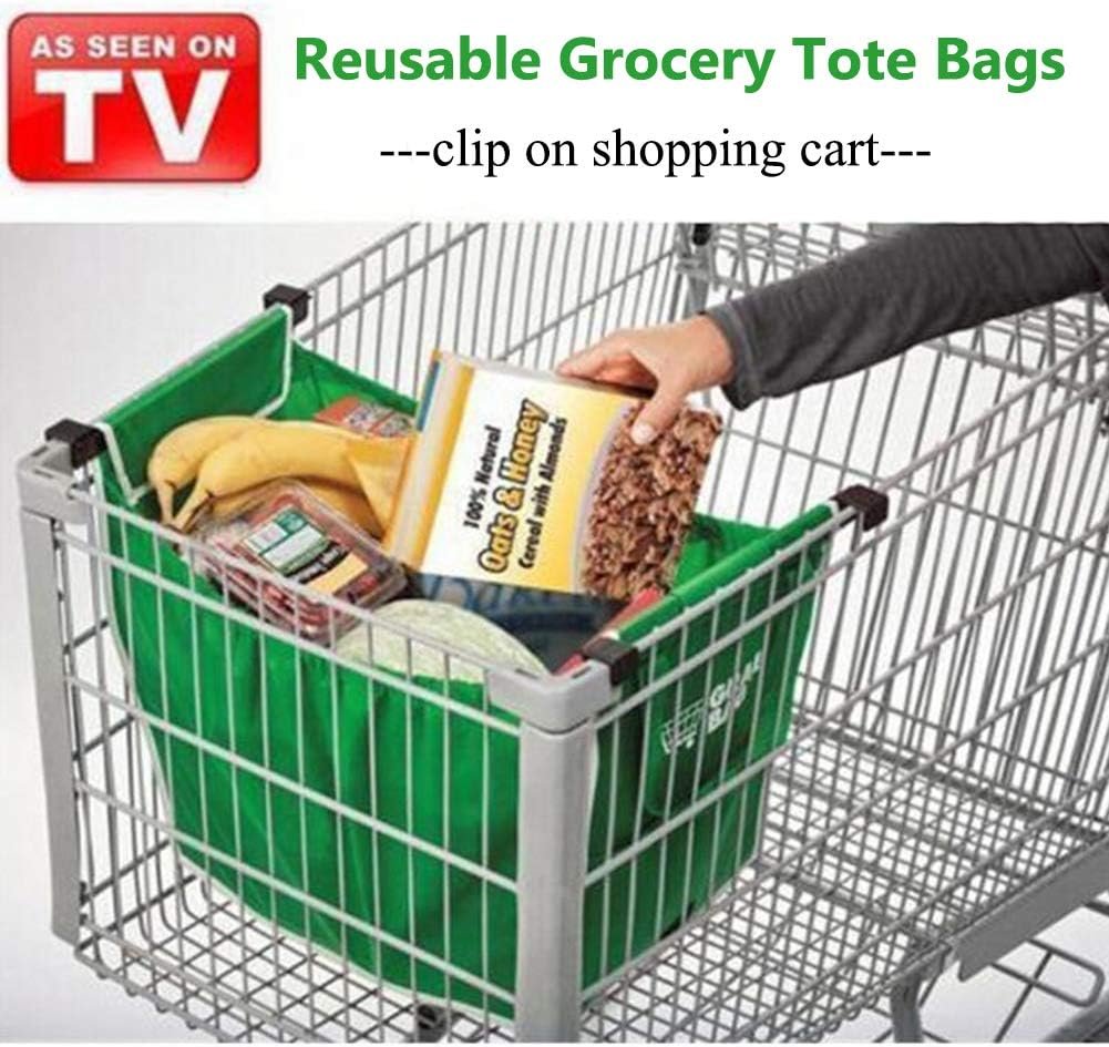 2Pack Reusable Shopping Trolley Bags Grab and Go Bag Collapsible Grocery Tote Bags with Handles, Clip on Shopping Cart As Seen On TV