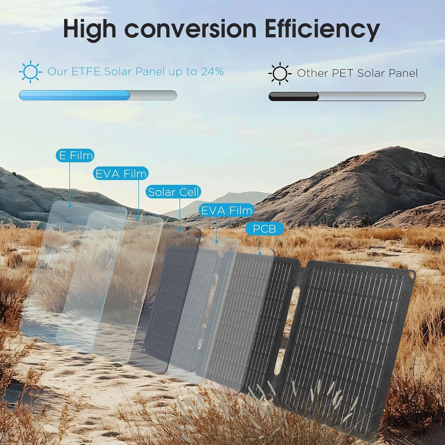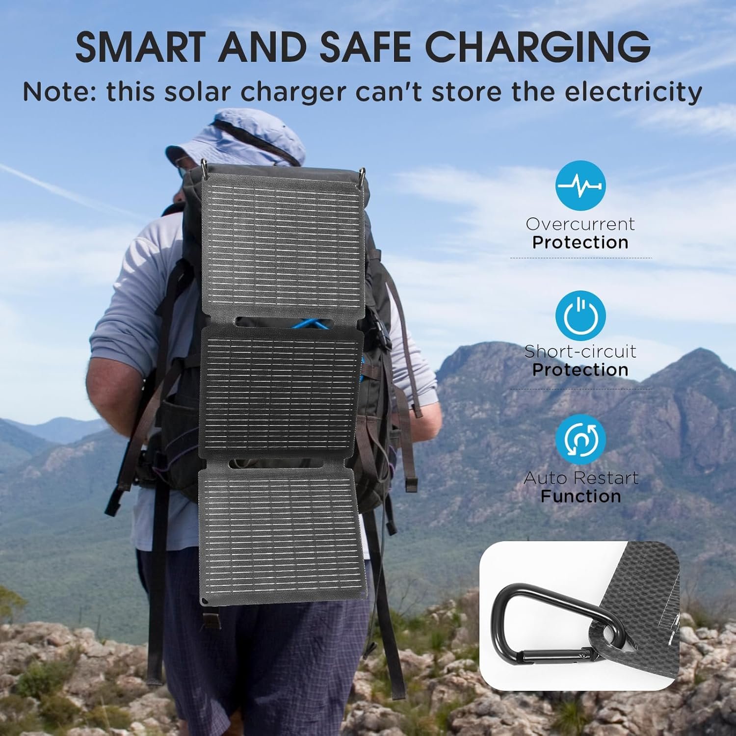 Durable and Versatile: This solar powered charger is made of durable Oxford cloth, featuring IP65-level waterproof, dustproof, and high-temperature resistance. It is an ideal solar charger for various outdoor activities, including camping, hiking, picnics, as well as RV or camper van trips, remote area travel, power outages, and off-grid living.