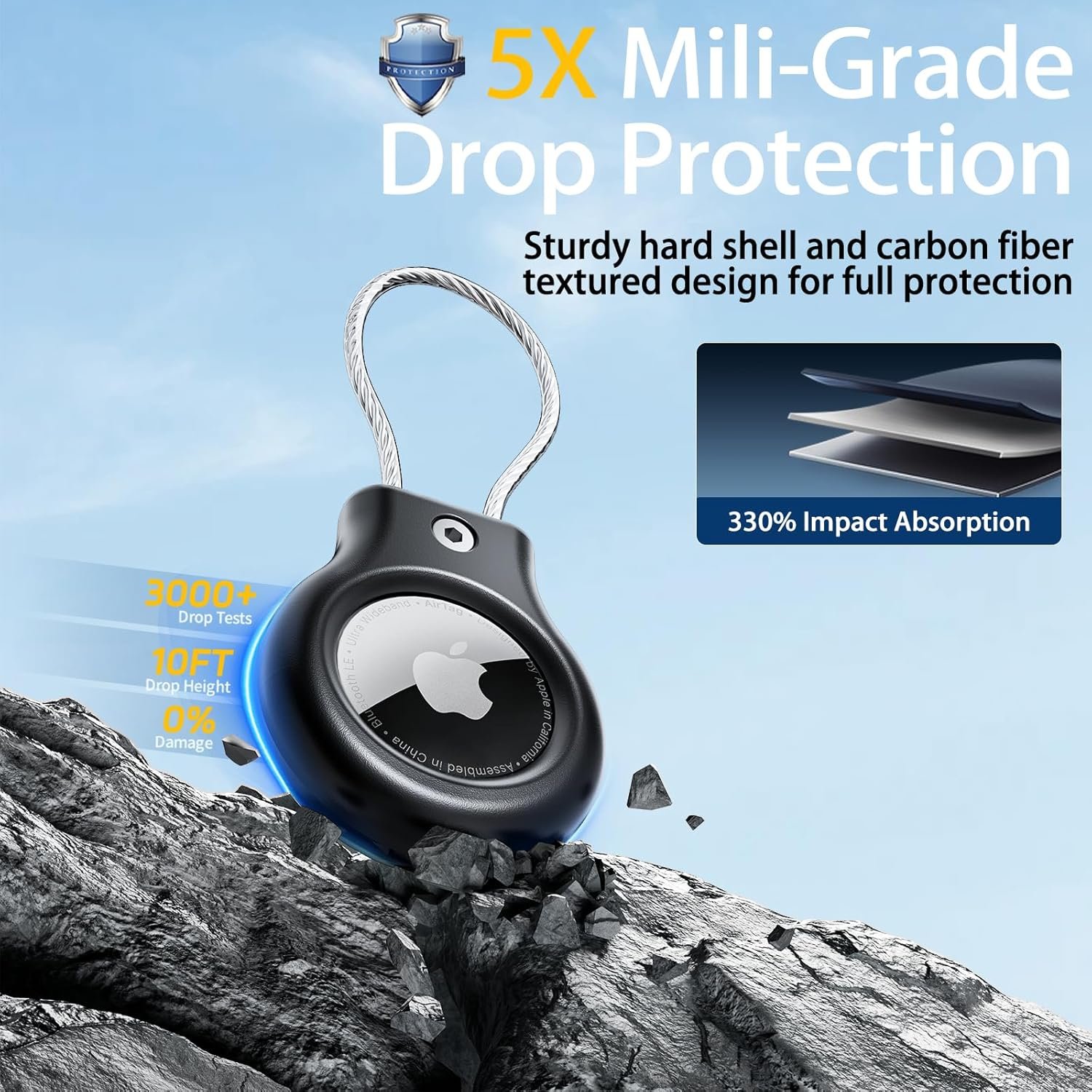 【Military-grade Drop Protection】: for apple airtag holder is made of carbon fiber and hard PC. Wire cable is made of stainless metal with film. Upgraded material Provide full protection for Airtag from daily scratches, bumps, and any other accidental damage