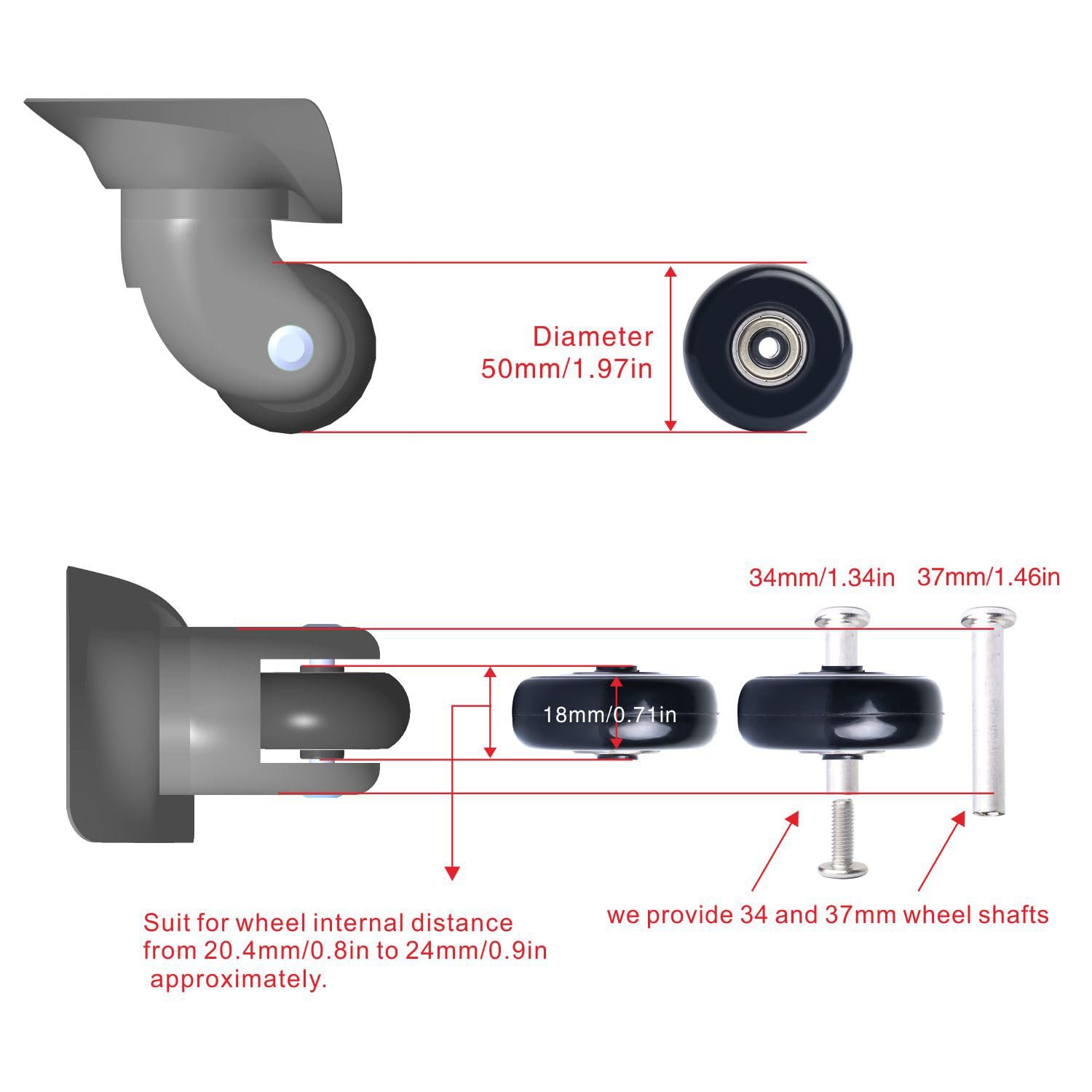 50mm Suitcase Luggage Wheels Replacement Kits with Precision Ball Bearing, 4pcs Swivel Caster Wheels for Replacement Luggage Travel Suitcase Caster