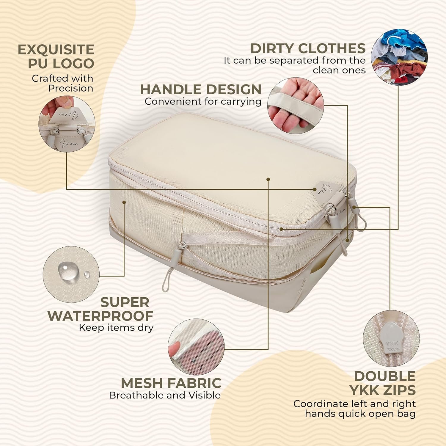 Packing has never been easier! UDAWE travel cubes feature a double-zipper compression system, reducing bulk and maximizing suitcase space. Stay organized and stress-free on every trip!