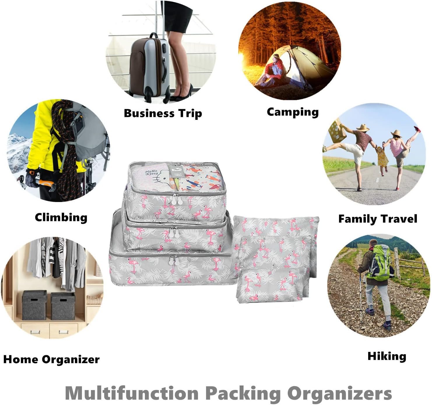 6 Set Packing Cube Luggage Organizer Pouch, Travel Storage Bags Organizer Set, Clothes Packing Cubes Laundry Pouch Suitcase Organizer Bags for Travel Carry On Luggage Packing (Blue Flamingo)