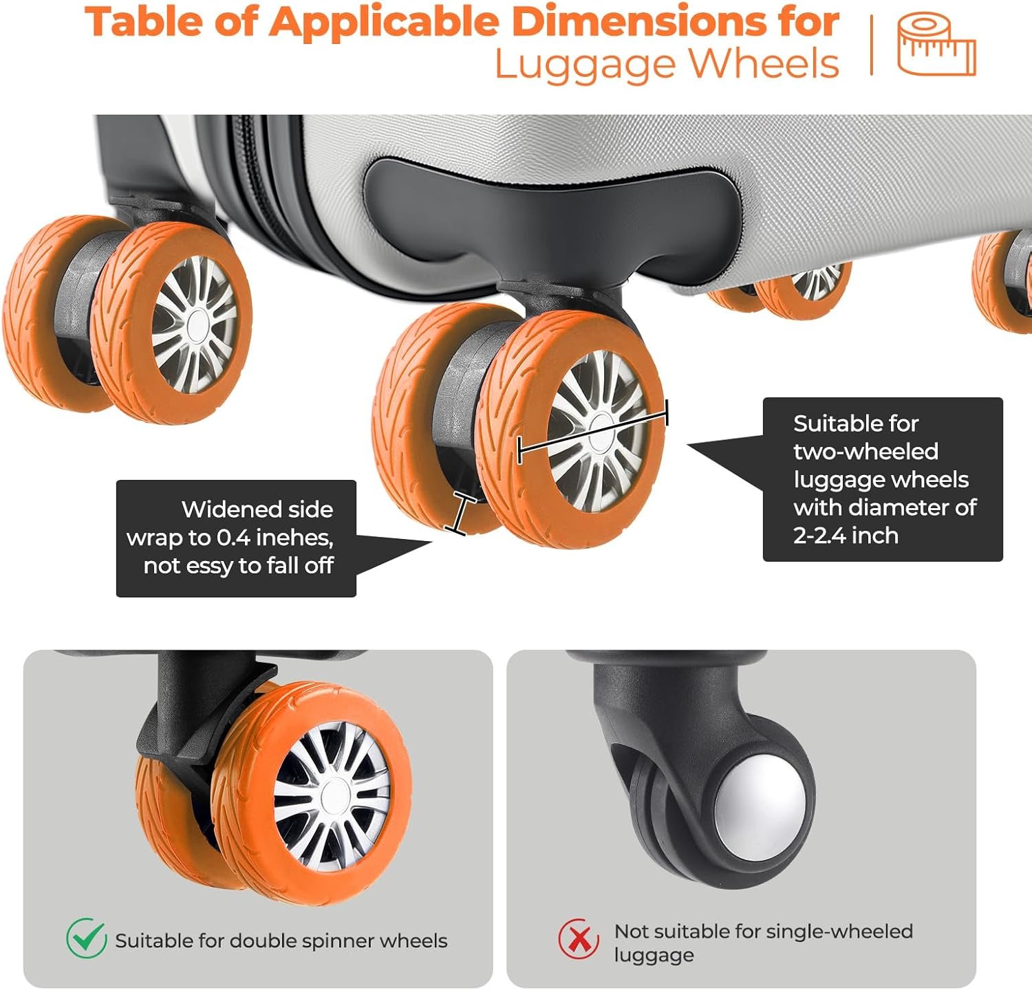 8 Pcs Upgrade Luggage Wheel Covers, Carry On Luggage Suitcases,Wear-Resistant, Anti-Noise, Silicone Wheel Protective Covers for 2-2.4″ Spinner Wheel,Essential Travel Accessories (Orange)