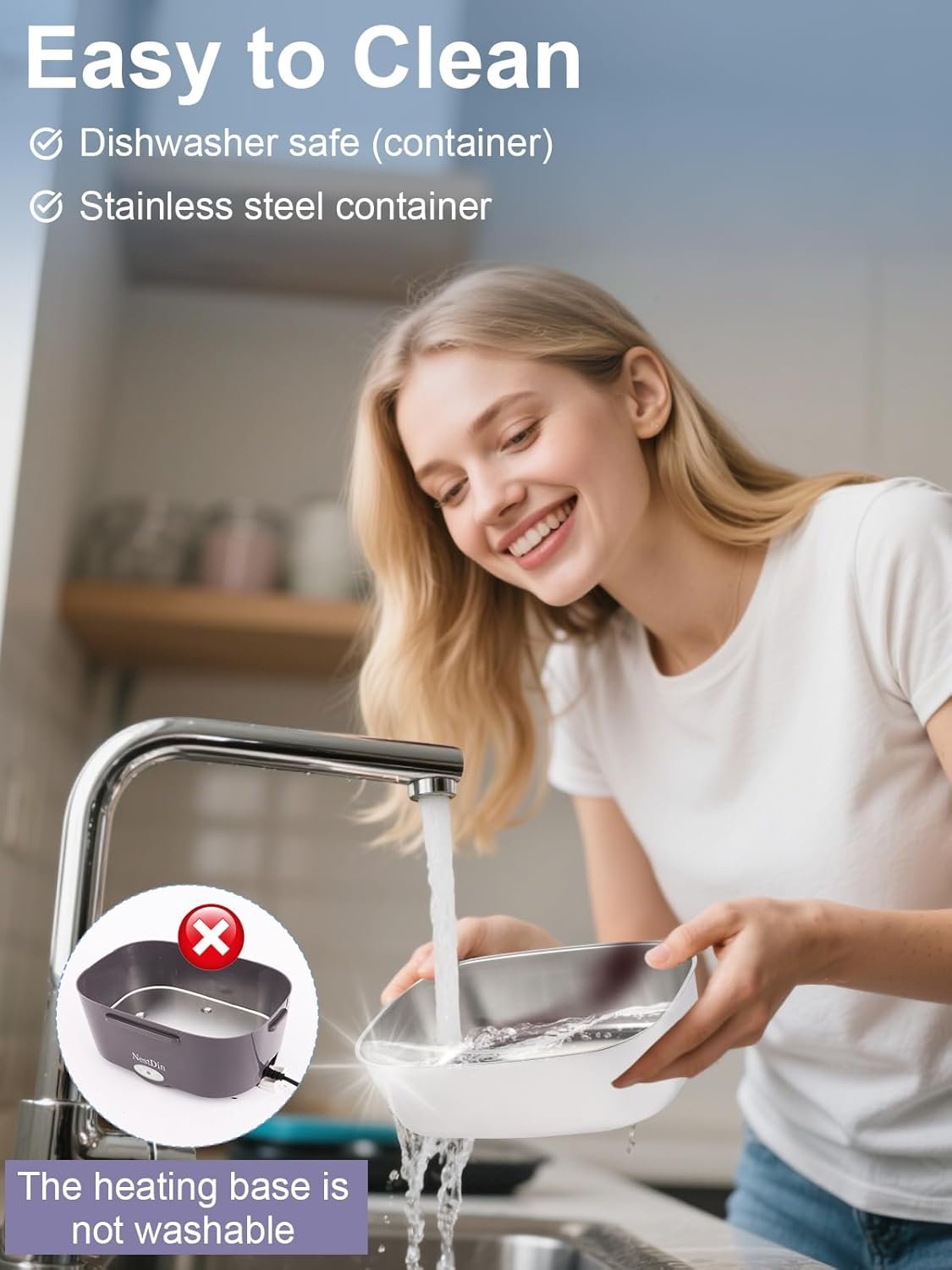 Fast & Efficient 80W Heating – With 80W high-power output, this food warmer lunch box heats evenly in just 25–40 minutes—no microwave needed. Add a little water for better results and enjoy freshly warmed food at your desk, in your truck, or on the go