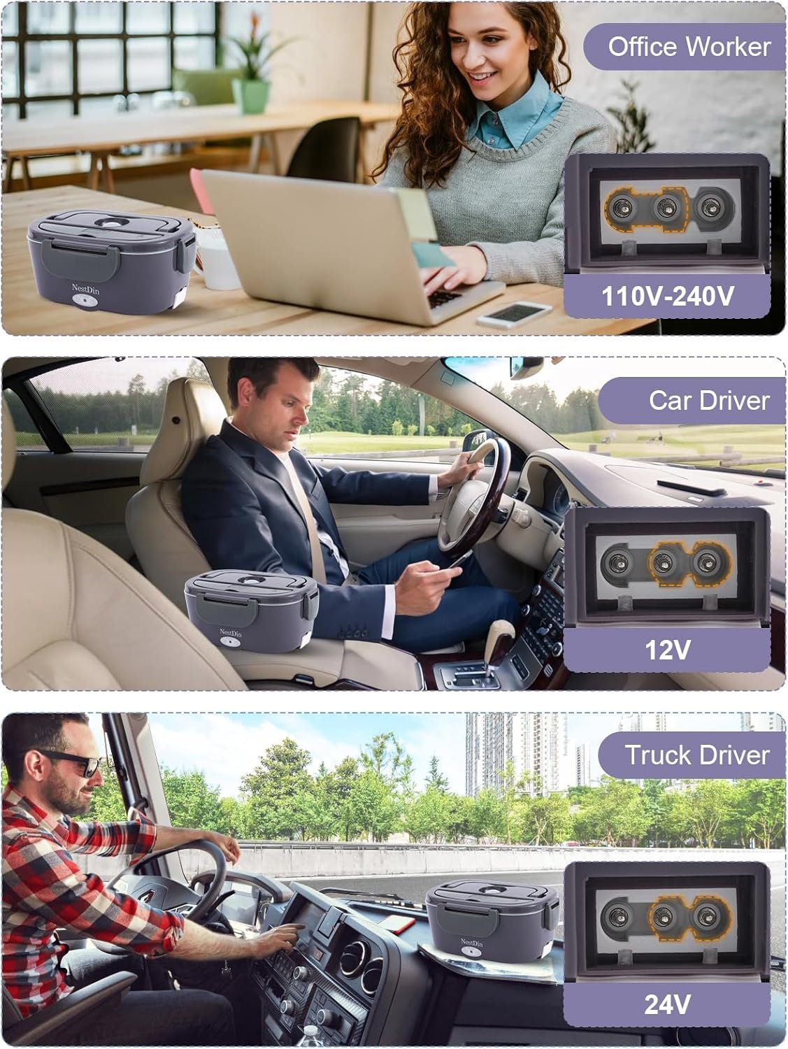 All-in-One Power for Work & Travel – Equipped for 110V-230V (home/office) and 12V/24V (car/truck), this hot lunch box for adults is built for professionals on the move—ideal for drivers, commuters, and busy workers