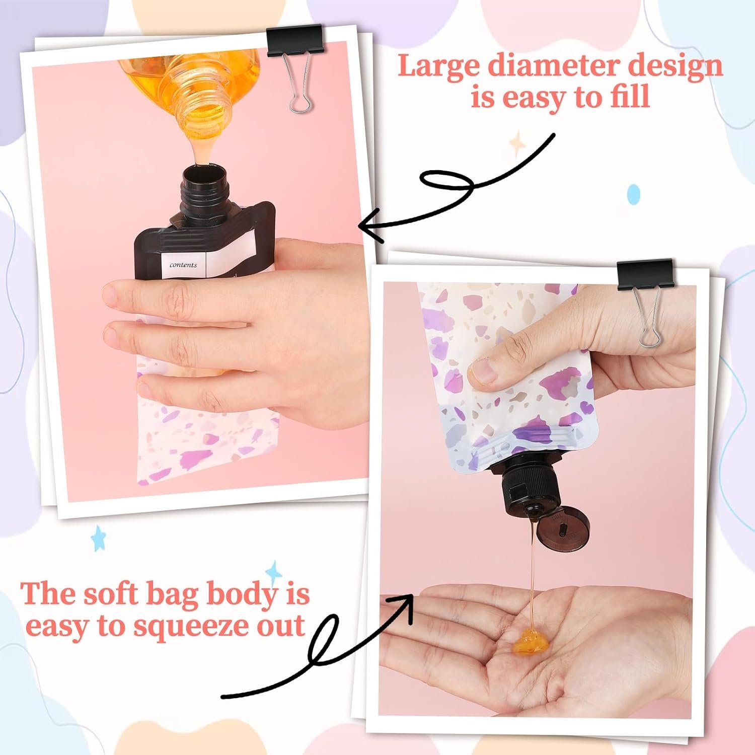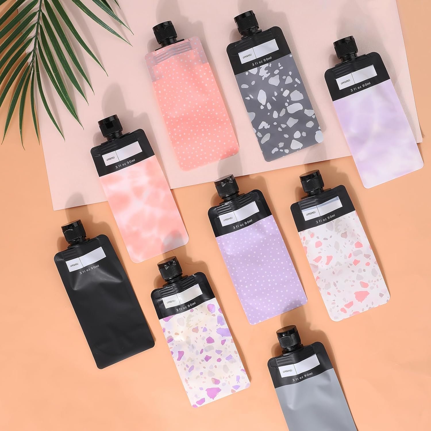 9pcs Refillable Leak Proof Empty Squeeze Pouches,Multiple Colors Travel Pouches for Toiletries,Portable Fluid Packing Bag for Shampoo Conditioner Lotion Body Wash