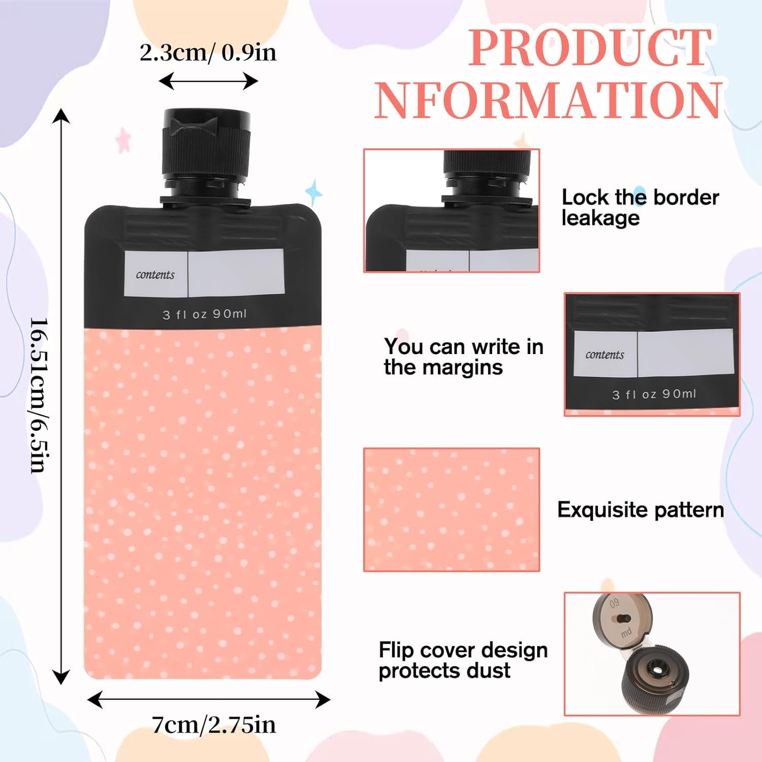 Leakproof design: This portable travel liquid container adopts a leakproof design,and the tight stitching prevents any leakage,which is more portable and easy to put into backpacks,handbags,pockets,etc.,leakproof,pressure-resistant,and not easy to break