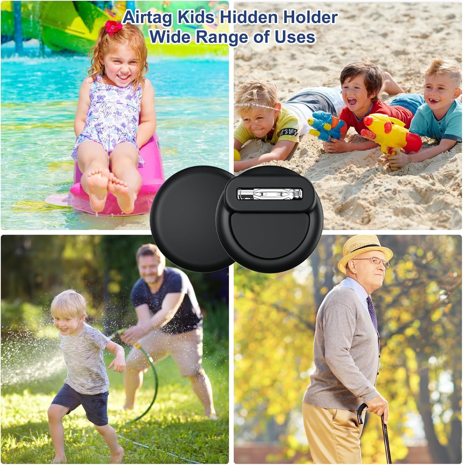 [WHAT YOU WILL GET] 4 Pack Waterproof Air Tags hidden kids holder in a package. (not include AirTag). The joy of free hands and children.The airtag kids hidden case wide range of applications for children, seniors, pets, backpacks, luggage and traveling with kids! If you have any questions, please feel free to contact us, we will provide you with the satisfied answer.
