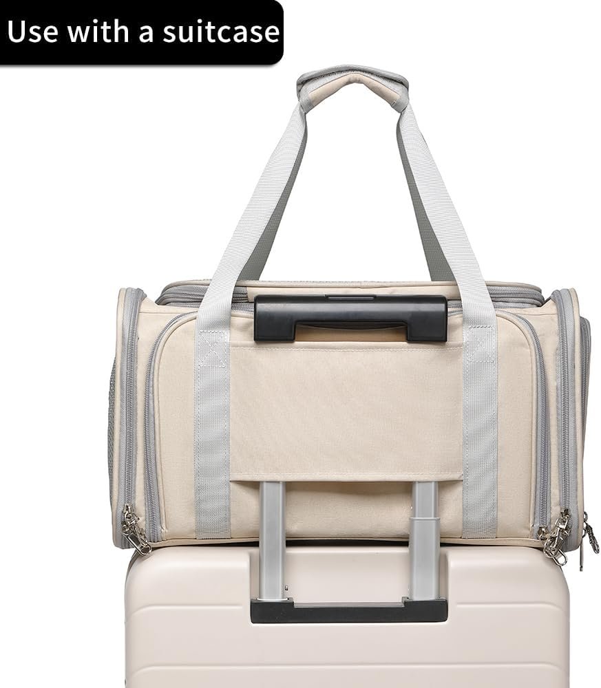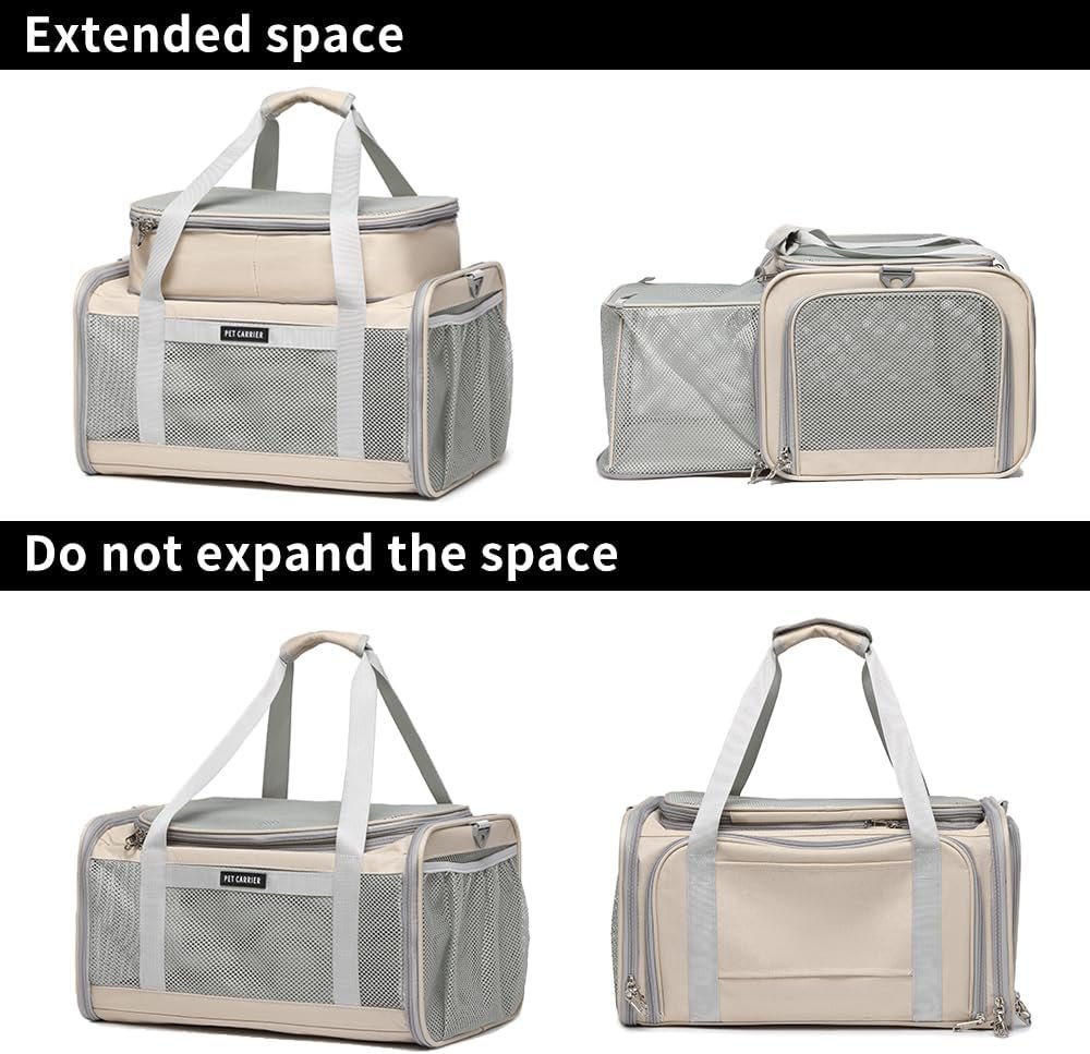 Airline Approved Pet Carrier for Cats and Small Dogs up to 15 lbs, Breathable Mesh, Portable Travel Bag for Bearded Dragon, Puppies Animal Hangbag, Rabbit Cage (Khaki, Expandable)