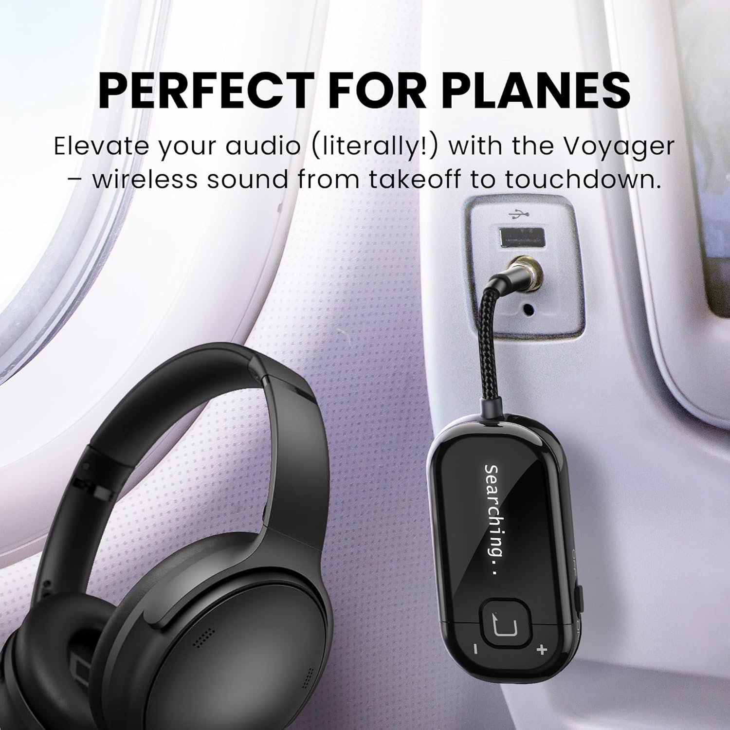 【LATEST AIRPLANE ADAPTER】Stream audio from in-flight screens or gym machines directly to AirPods, Bose and any Bluetooth headphones.