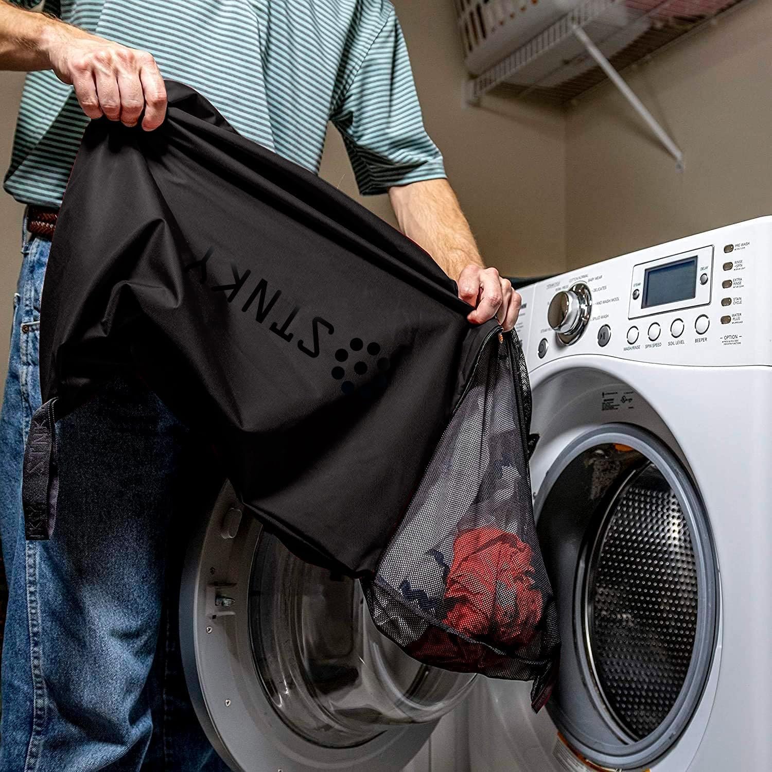 EASY WASHING: When doing laundry flip your STNKY bag inside out and wash & dry your clothes right inside the bag. No need to touch sweaty gym clothes again!