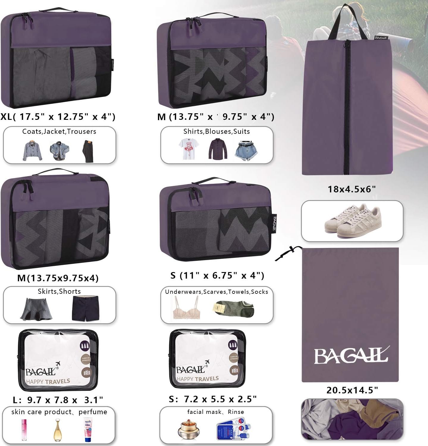 BAGAIL 8 Set/9 Set Packing Cubes Luggage Packing Organizer for Travel, Suitcase Packing Bags for Travel Accessories