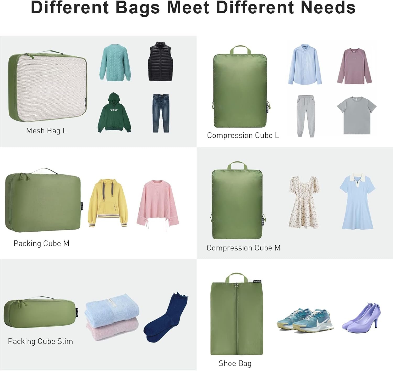 Bagail Ultralight Compression Cubes 7 Set – 3 Packing Cubes, 3 Organizers, and 1 Shoe Bag