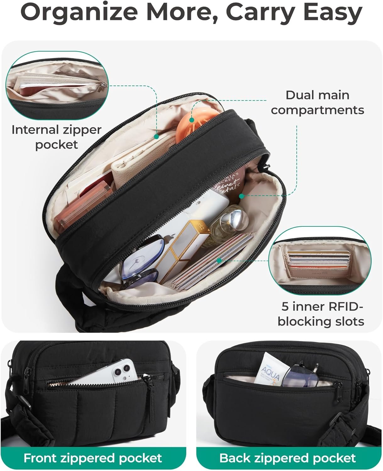 BAGSMART Cross Body Purse, Mini Crossbody Bags for Women Travel Purse, Puffy Shoulder Handbag Wallet with RFID Blocking Slots