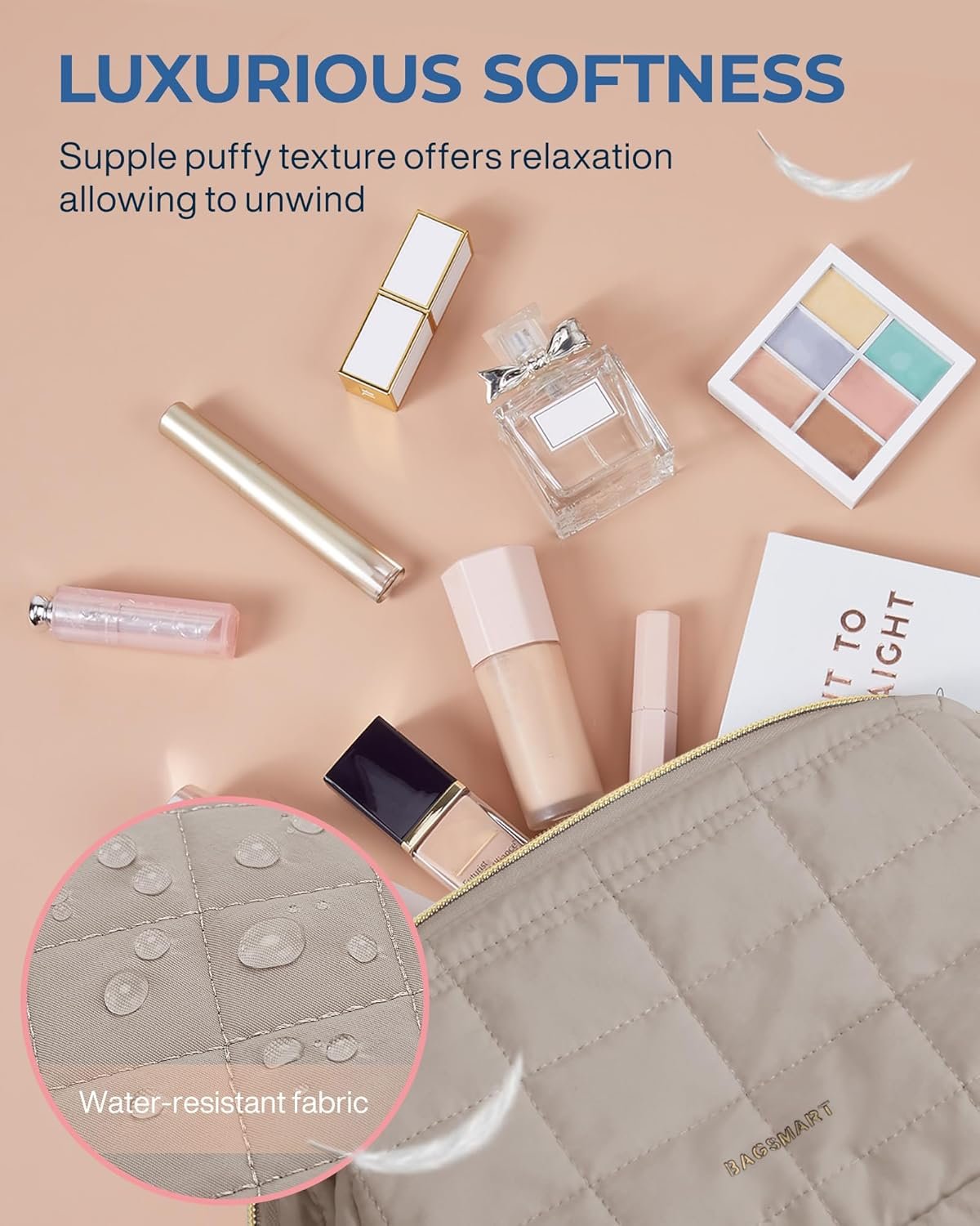 【Sophistication with Comfort】- Made from soft and luxurious taslan fabric, this cute and puffy makeup bag showcases a laid-back vibe that effortlessly complements your beauty routine. The supple texture of cosmetic case adds an element of relaxation to your daily rituals, allowing you to unwind and enjoy the process of getting ready