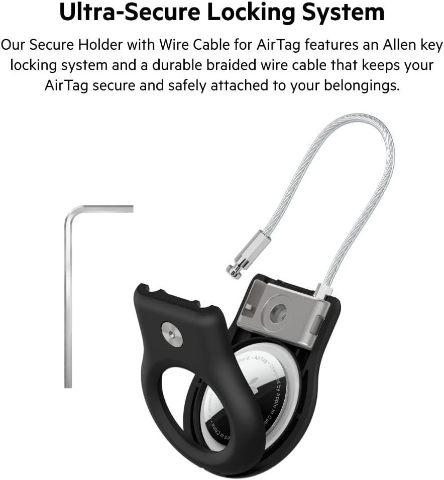 DURABLE and DEPENDABLE: This Belkin Apple AirTag case features an allen key locking system and a durable braided wire cable to keep your AirTag safely inside the secure holder, so there’s no need to worry about your AirTag holder slipping off.