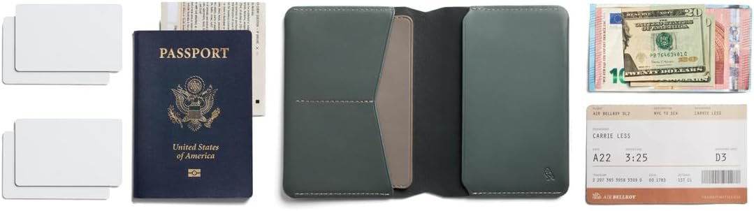 Bellroy Passport Cover (slimline travel wallet/pouch with card slots and space for cash plus travel documents) – Everglade