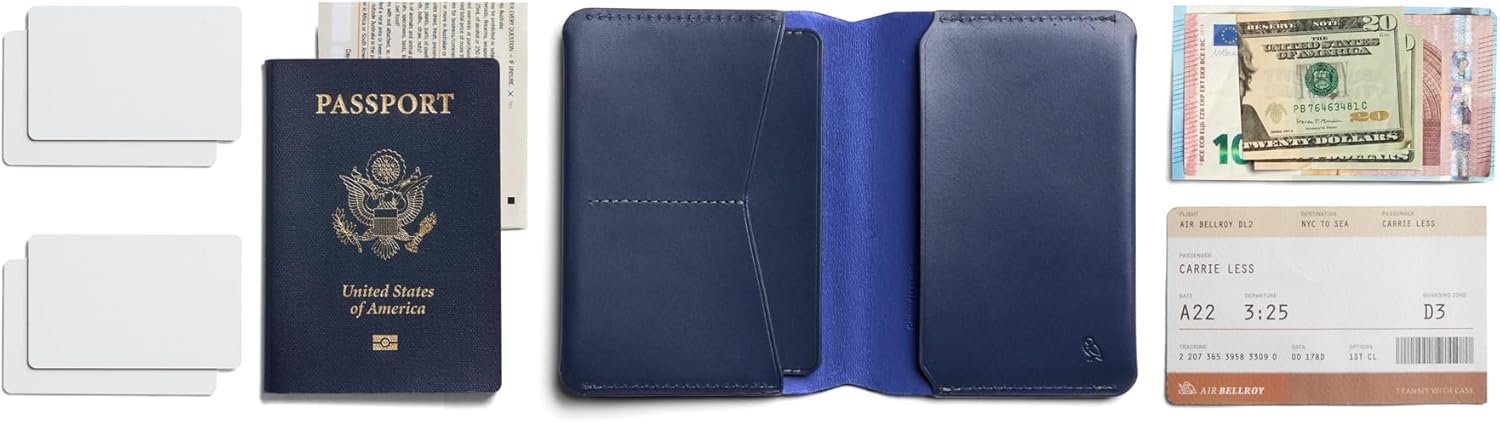 Bellroy Passport Cover (slimline travel wallet/pouch with card slots and space for cash plus travel documents) – Navy