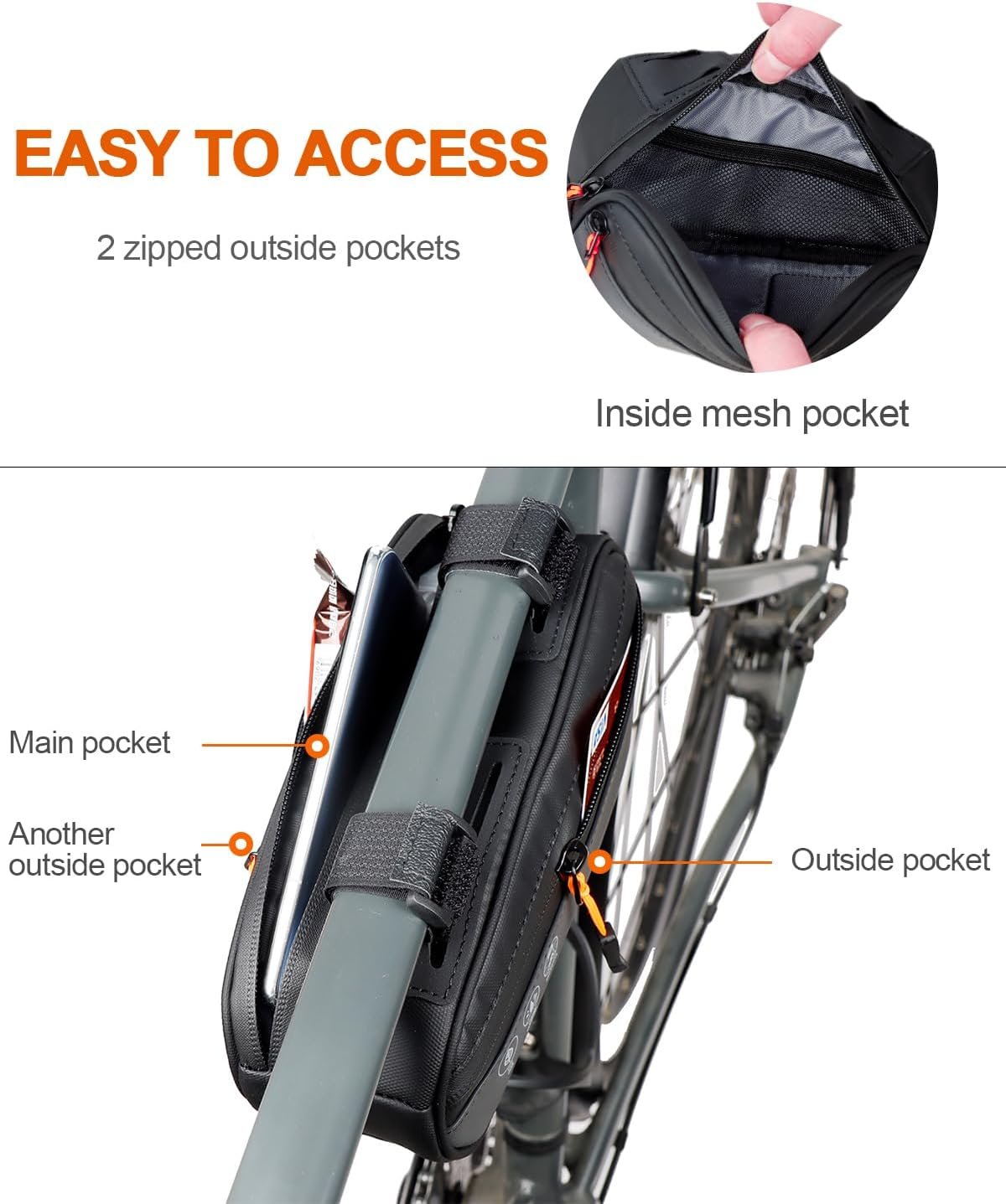 Bike Frame Bag, Waterproof Bicycle Triangle Bag with 2 Side Pockets, Bike Storage Pouch, 3-in-1 Top Tube Bags for Phone, Cycling Tool Accessories Pack for MTB Mountain Road Bikes