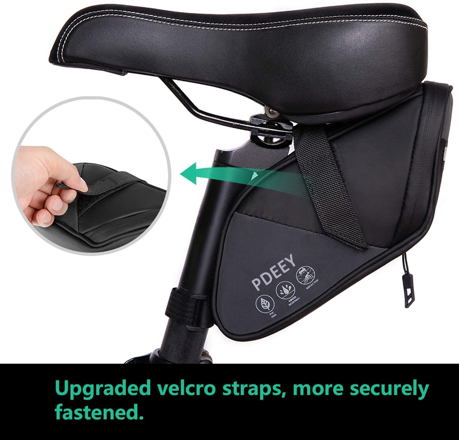 With the taillight strap, you can attach a taillight to this bike seat bag(Taillight doesn’t include in the package) for a safe riding. And the taillight strap of our bike bag under seat has been processed by reinforced, it will not falling apart when you enjoy your riding.