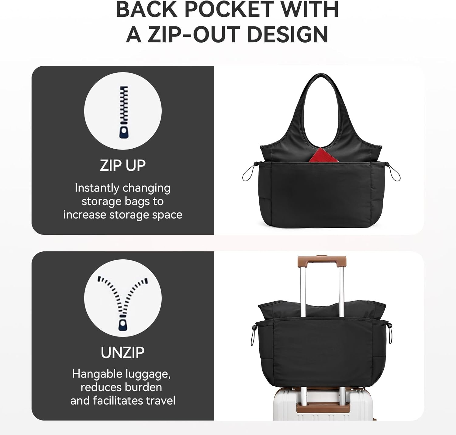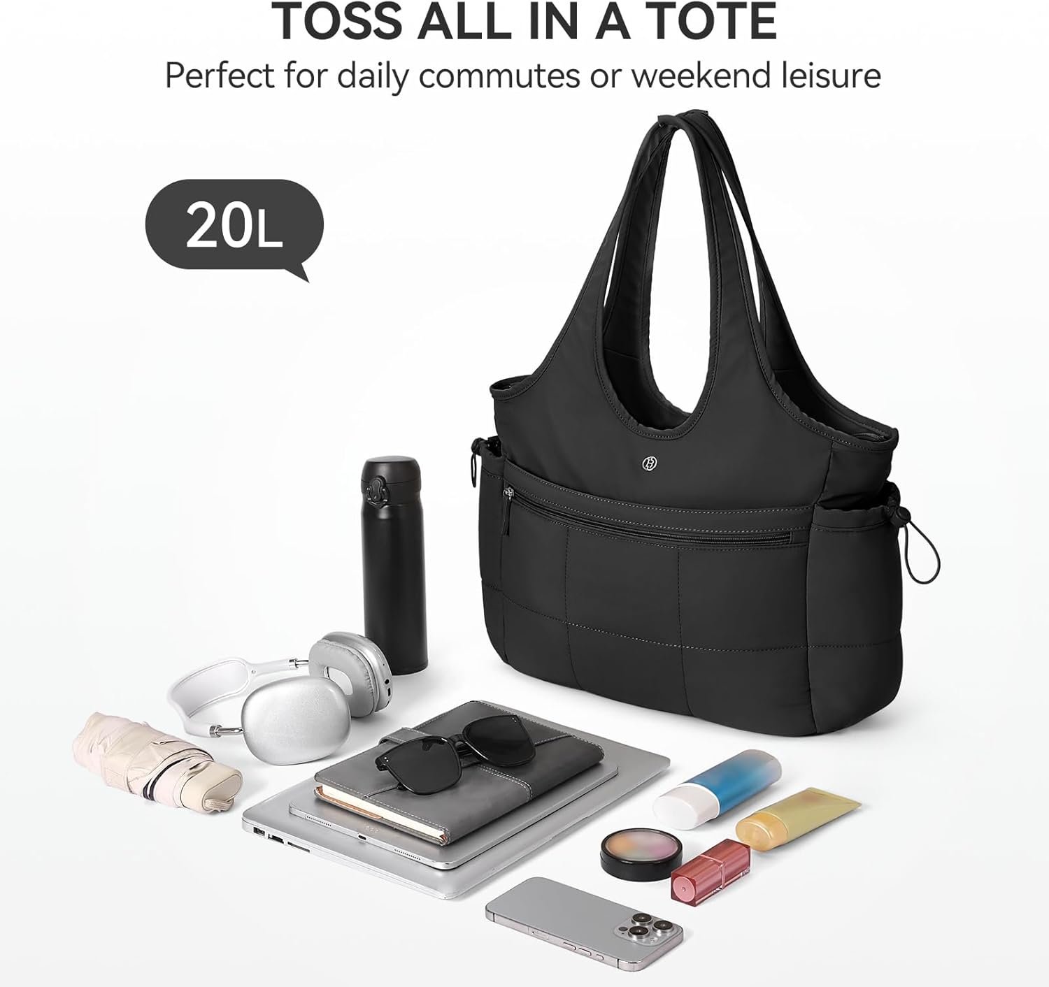 BOSTANTEN Puffer Tote Bag for Women Travel Tote Bag with Trolley Sleeve Lightweight Quilted Laptop Nurse Bag with Zipper
