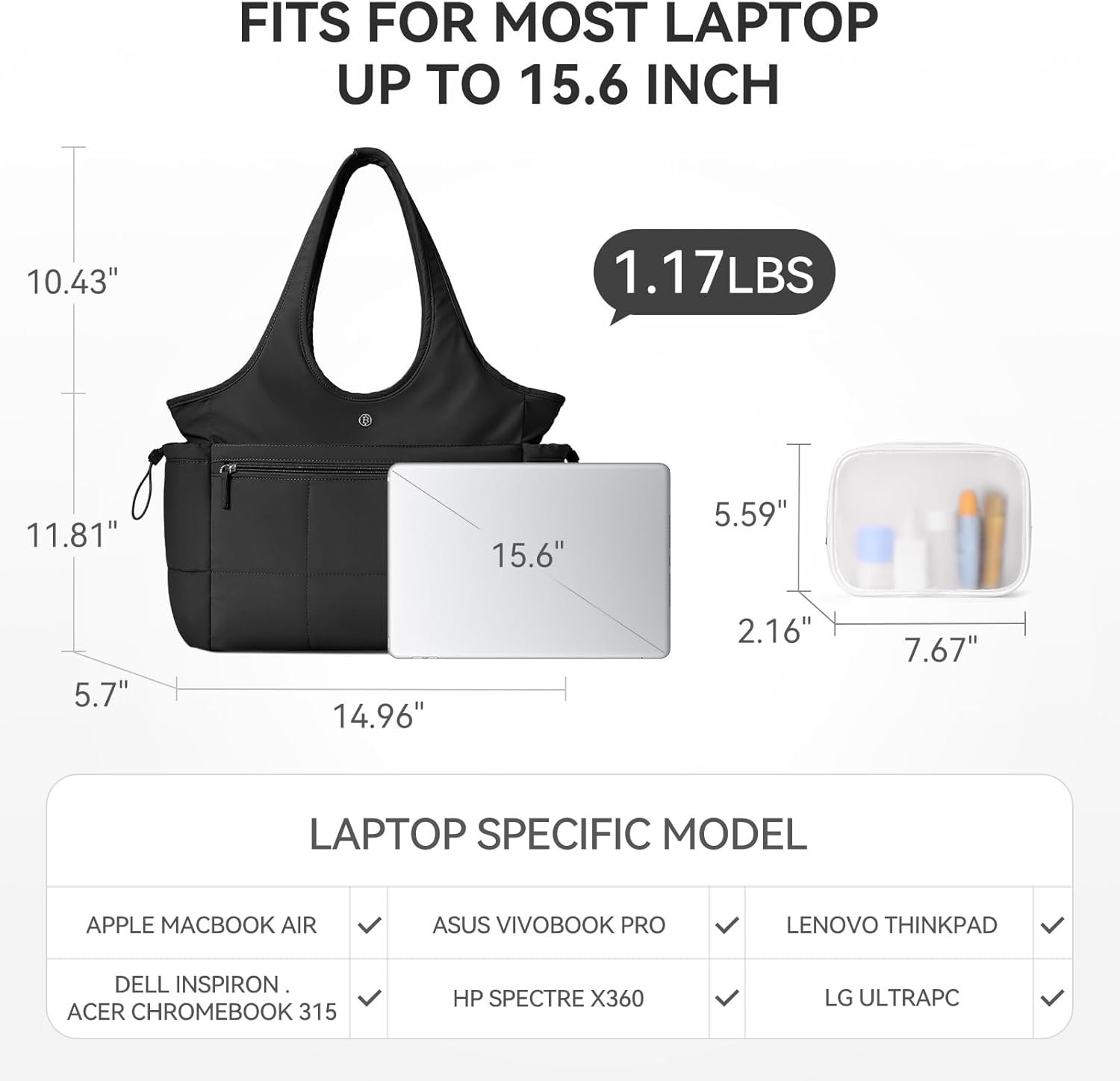 Customers find the tote bag lightweight and great for on-the-go use, with perfect size and lots of compartments. One customer mentions that the sleeve can double as an outside pocket.