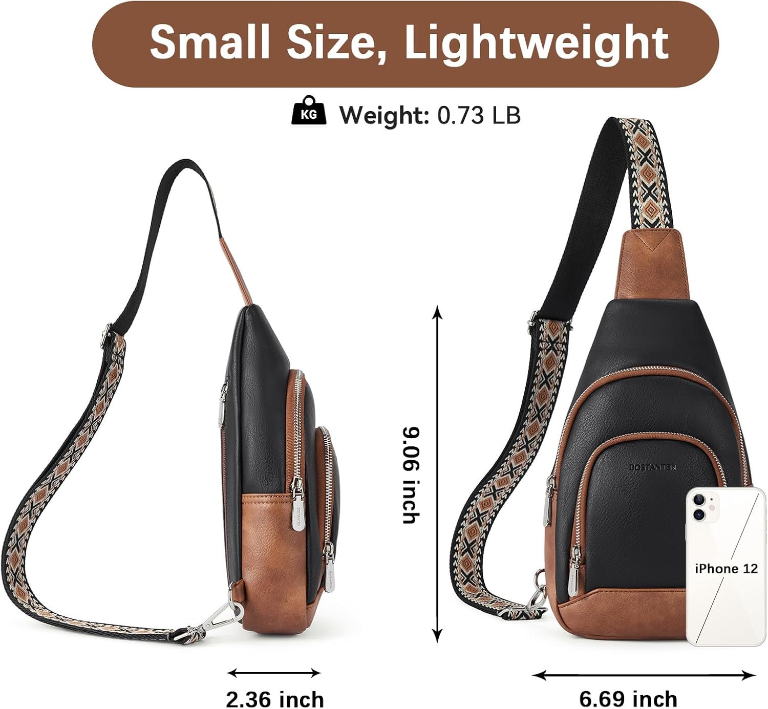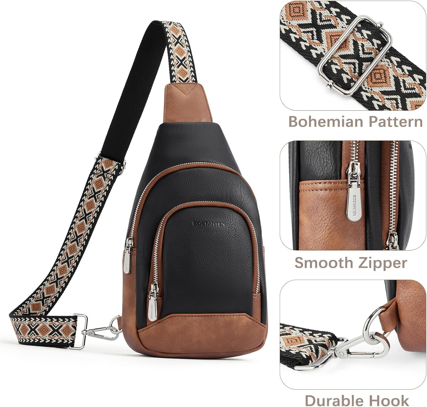 BOSTANTEN Sling Bag for Women Crossbody Purse Crossbody Bag Leather Chest Bag with Adjustable Guitar Strap for Travel