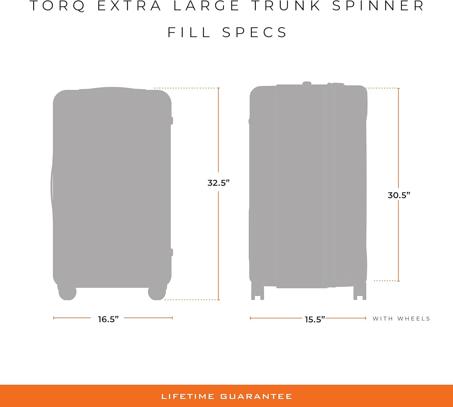 EXTRA LARGE SUITCASE – The Torq Extra Large Trunk Spinner sets a new bar for large trunk luggage with its abundant space and scratch-resistant polycarbonate construction