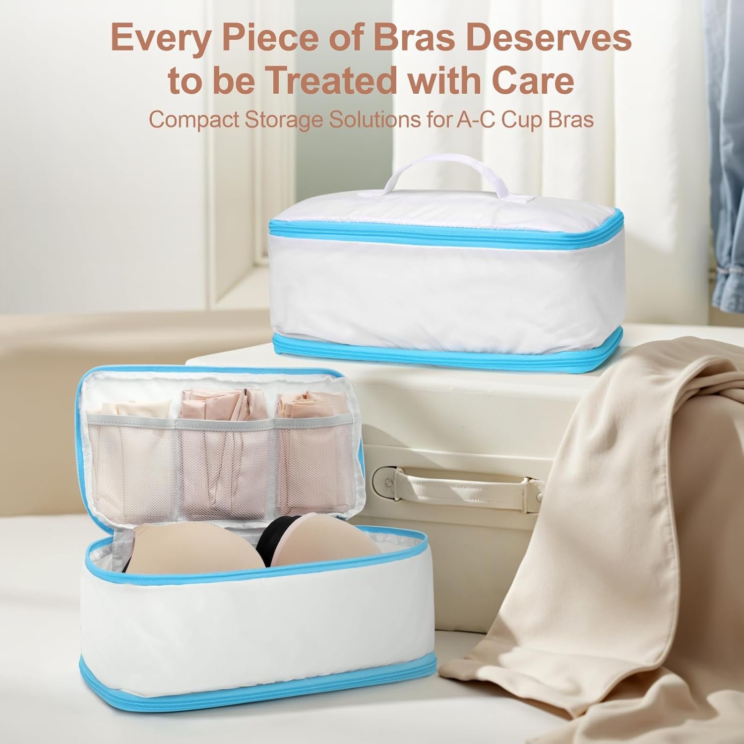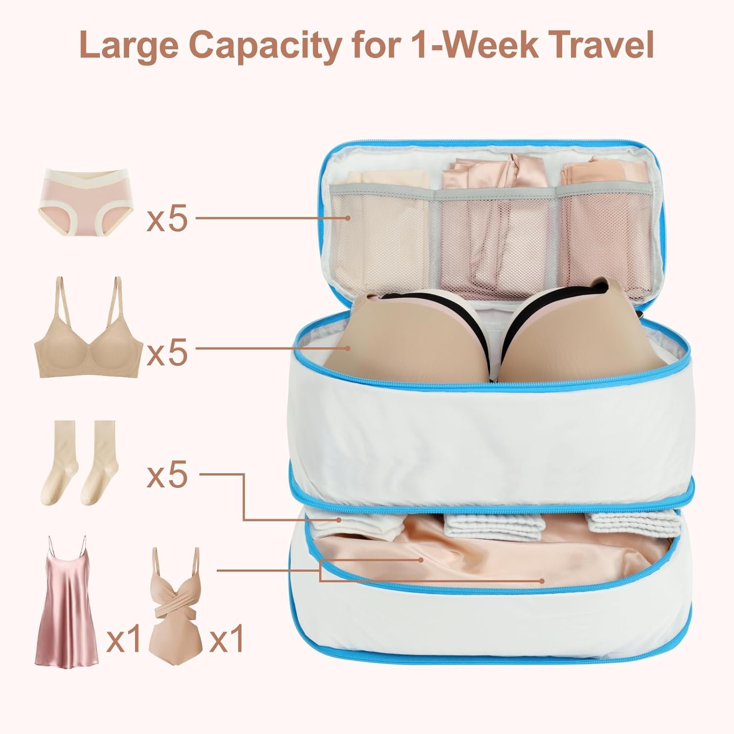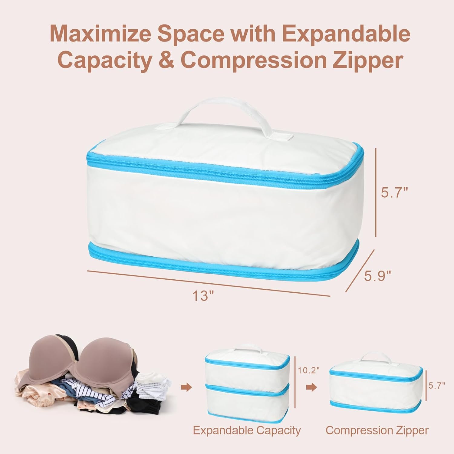 Cambond Travel Underwear Organizer Bag – 4-in-1 Double Layer Lightweight Bra Organizer, Portable Expandable Compression Packing Cubes Travel Packing Organizers, Underwear Storage Bag for Women