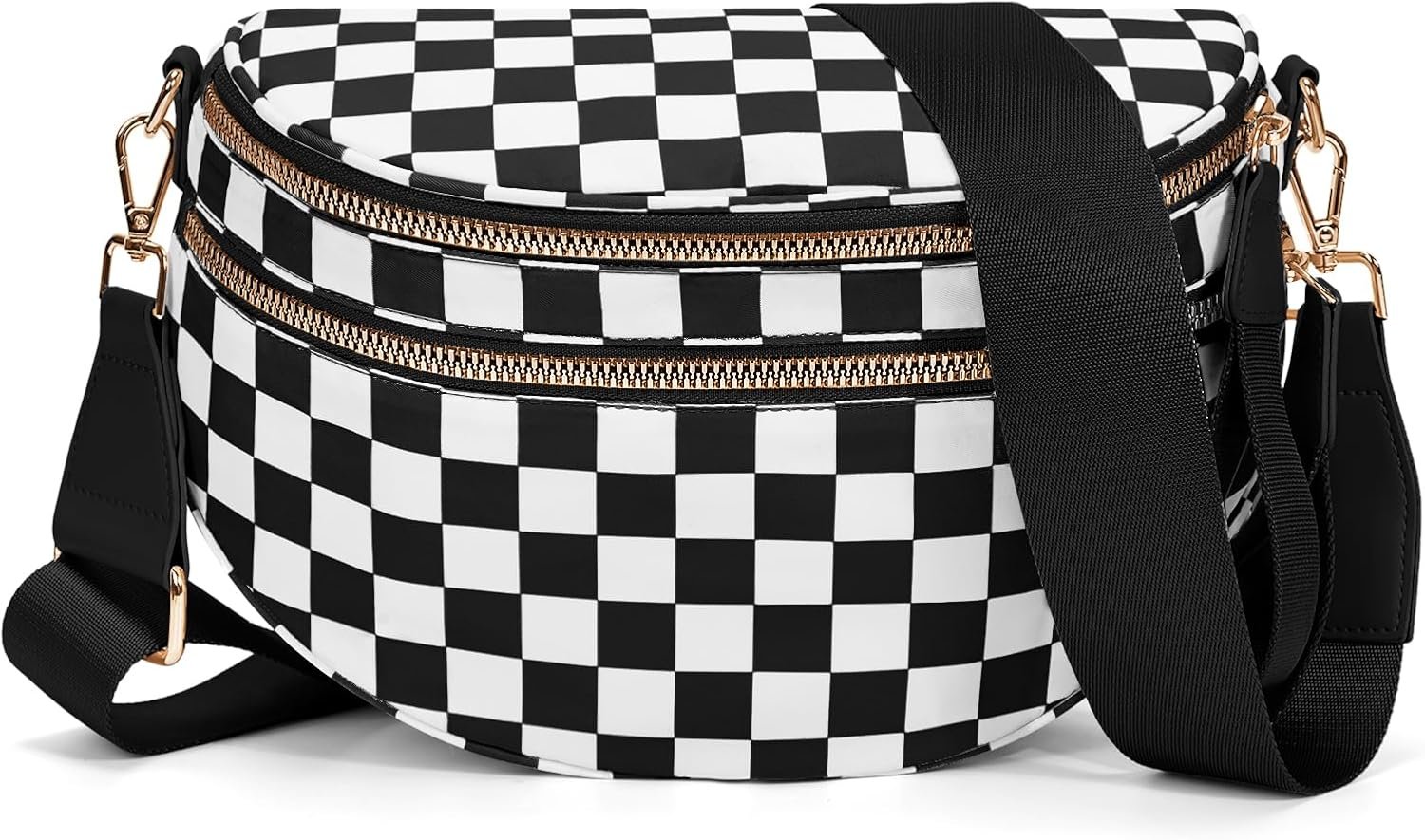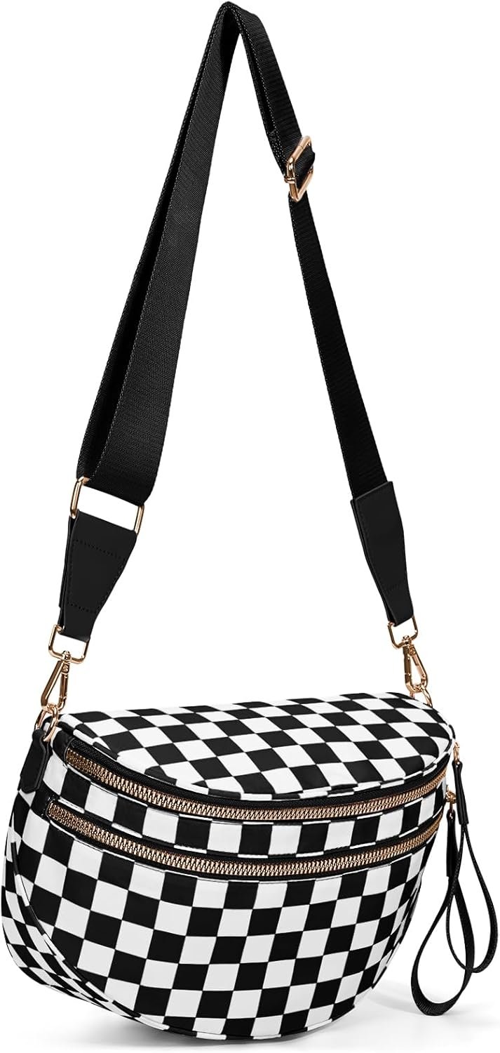 Checkered Bum Bags for Women Crossbody,Nylon Crossbody Bag Large Fanny Pack Checkered Purse Oversized Slouchy Belt Bag