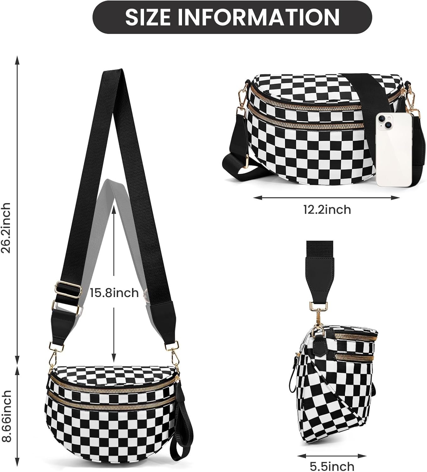 Item model number : Checkered Bum Bags for Women Crossbody
