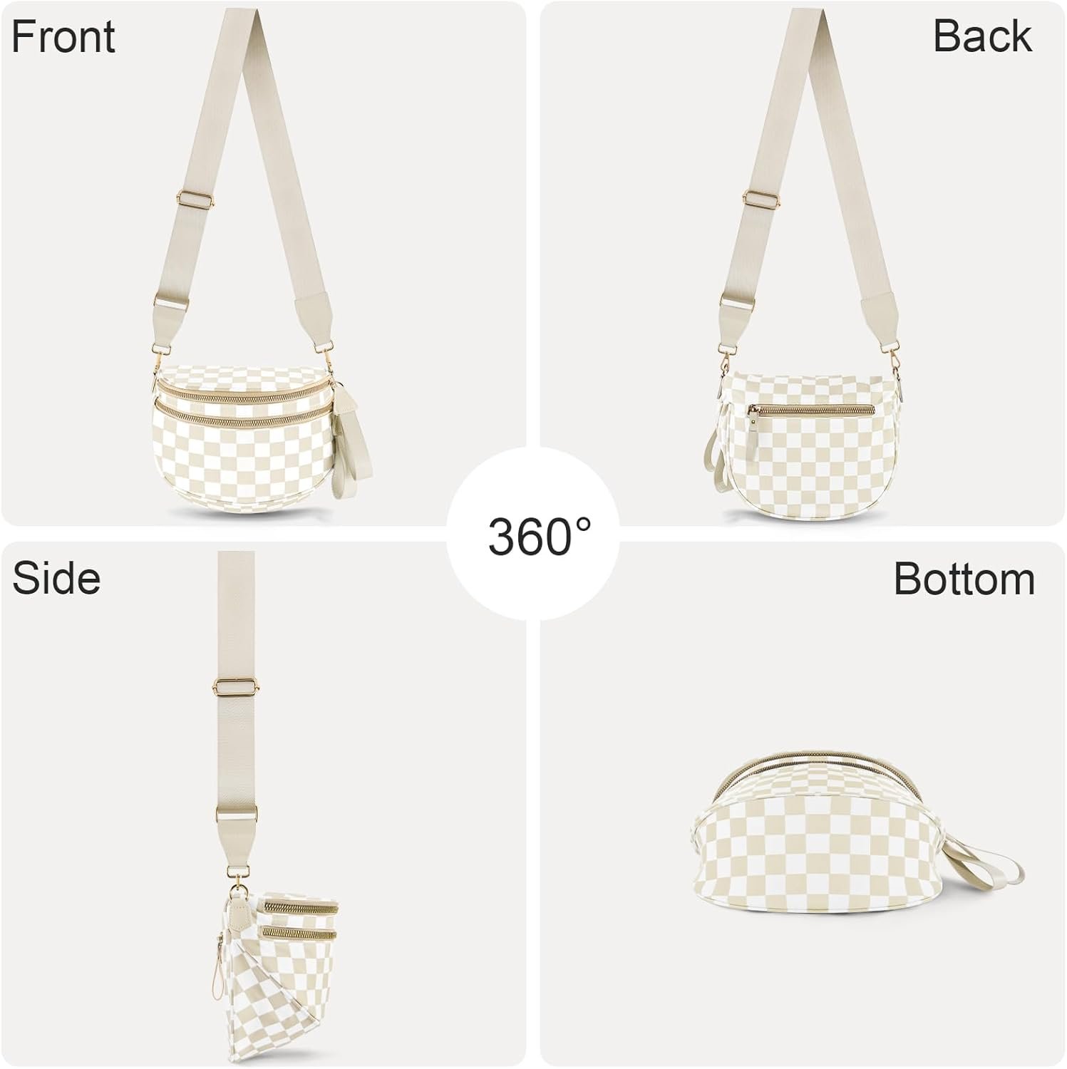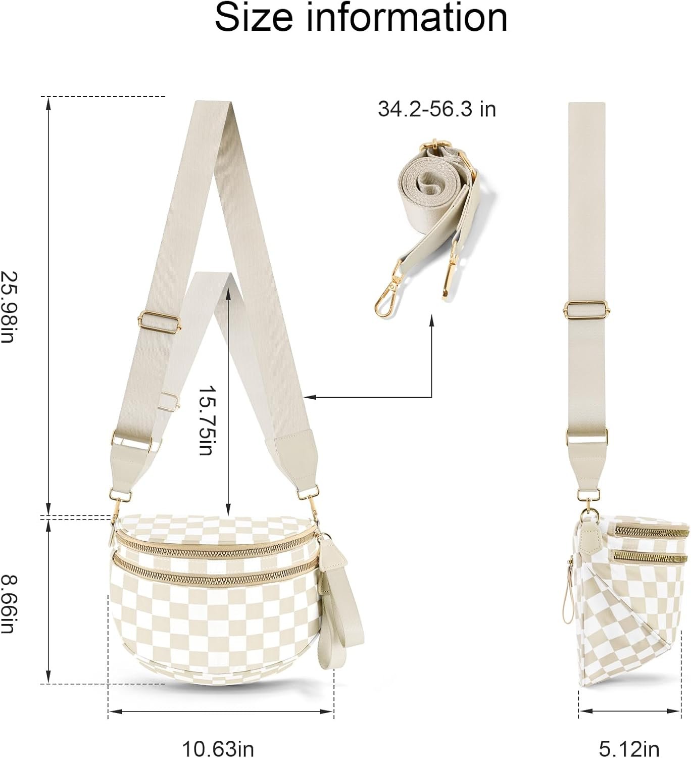 Checkered Crossbody Bags for Women, Large Nylon Bum Bags Plus Size Fanny Pack Sling Bag Belt Bag for Women Travel, Beige Checkered