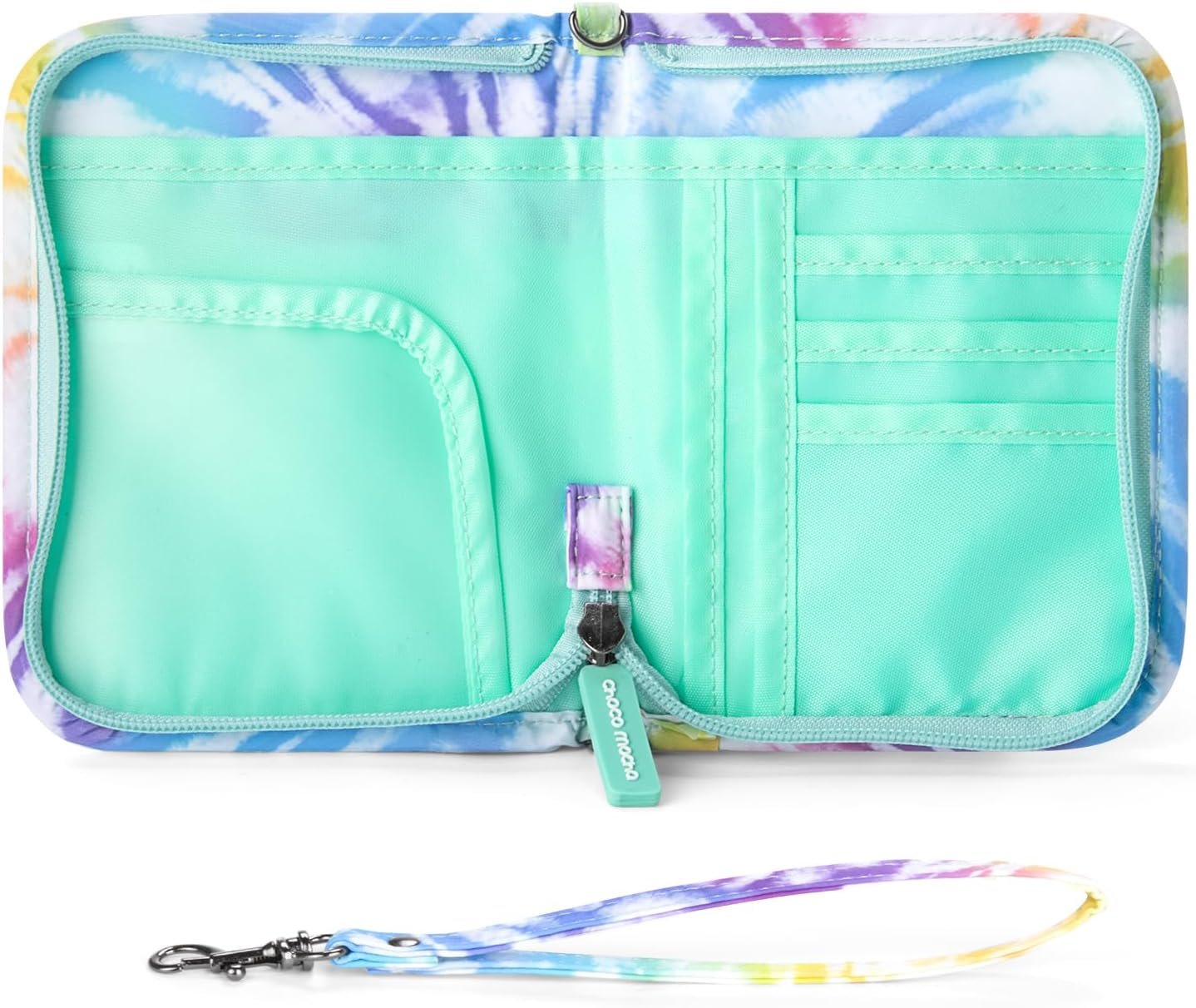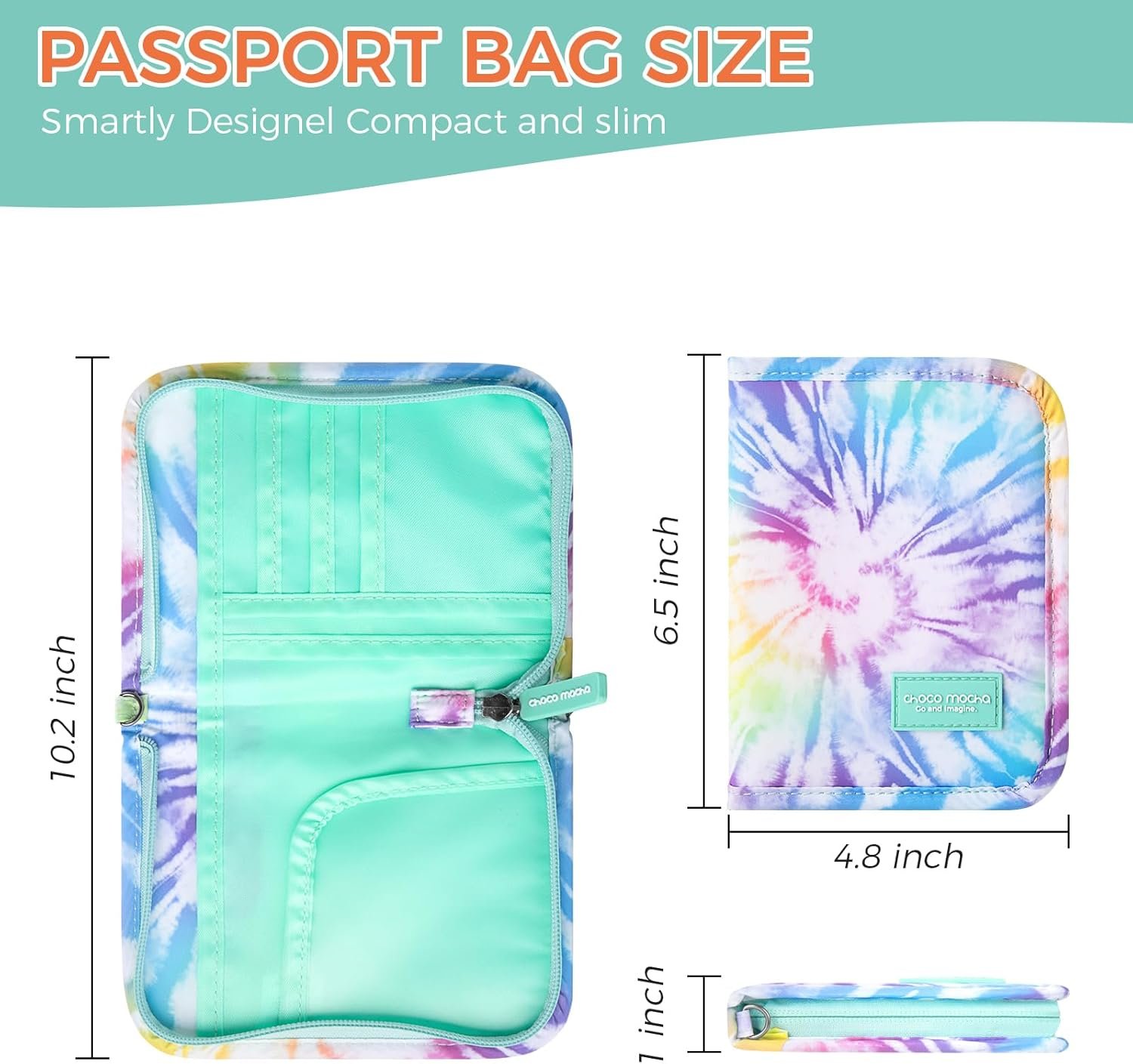 Choco Mocha Girls Passport Cover – Kids Passport Holder Wallet with Zipper & Wristlet Strap for Family Travel, Tie Dye-colorful