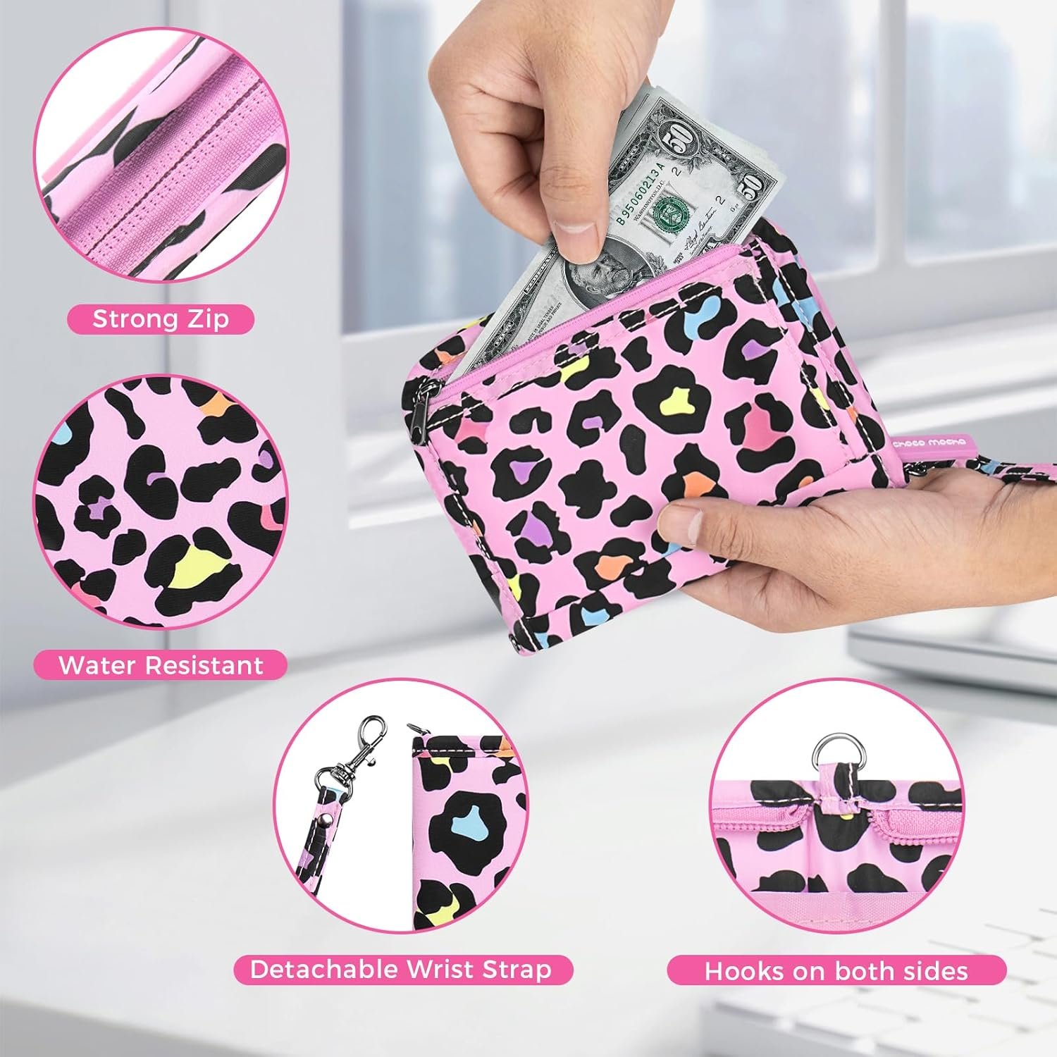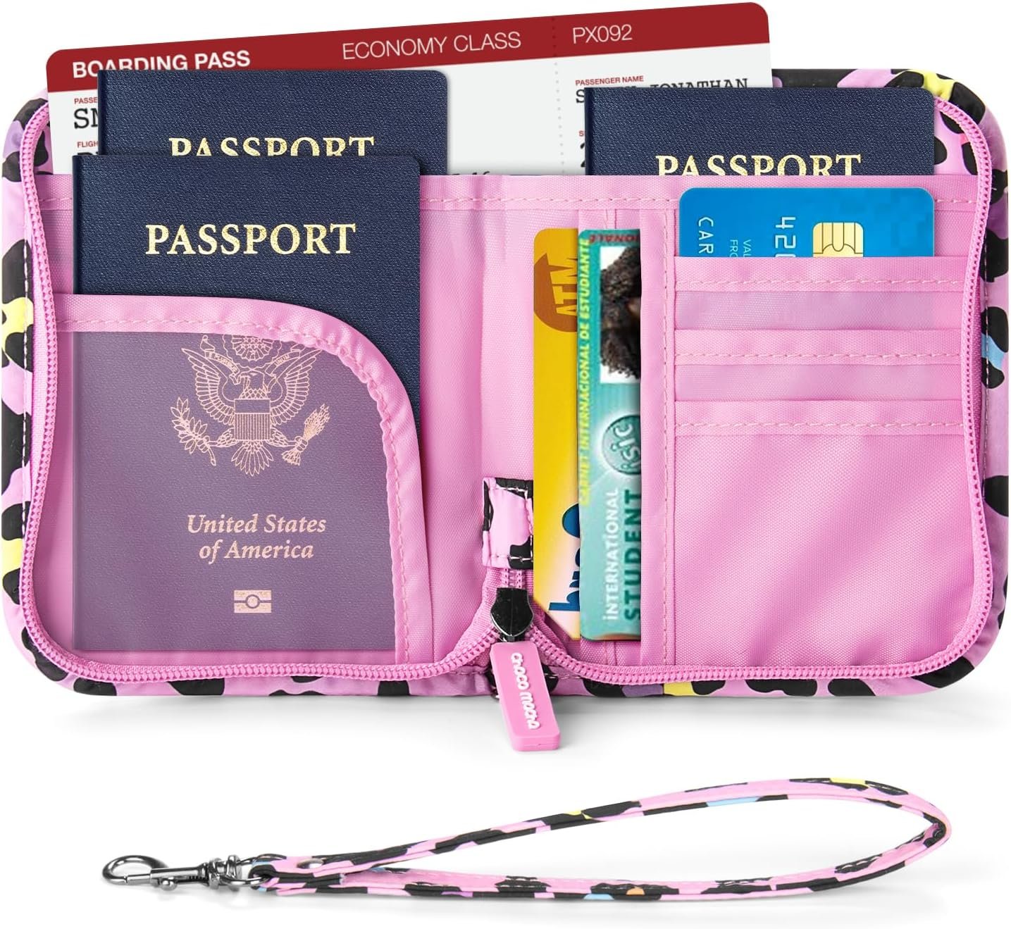 Secure & Practical: This passport holder with zipper features a detachable wristlet strap and waterproof materials and to keep passports safe and easily accessible.